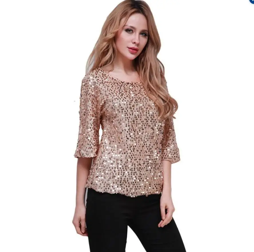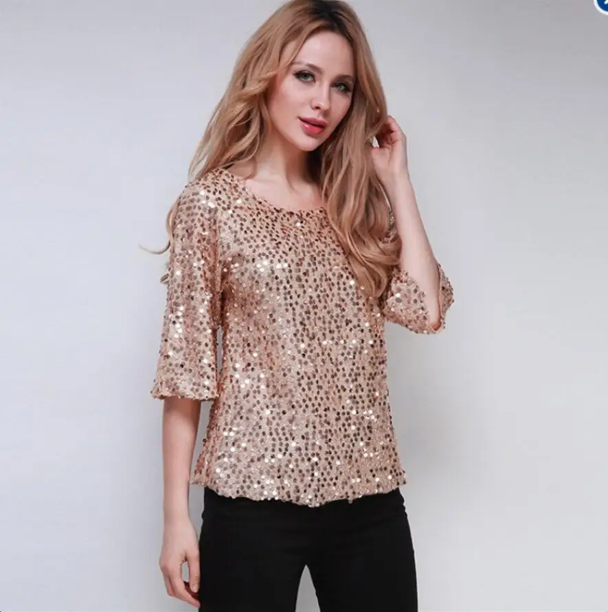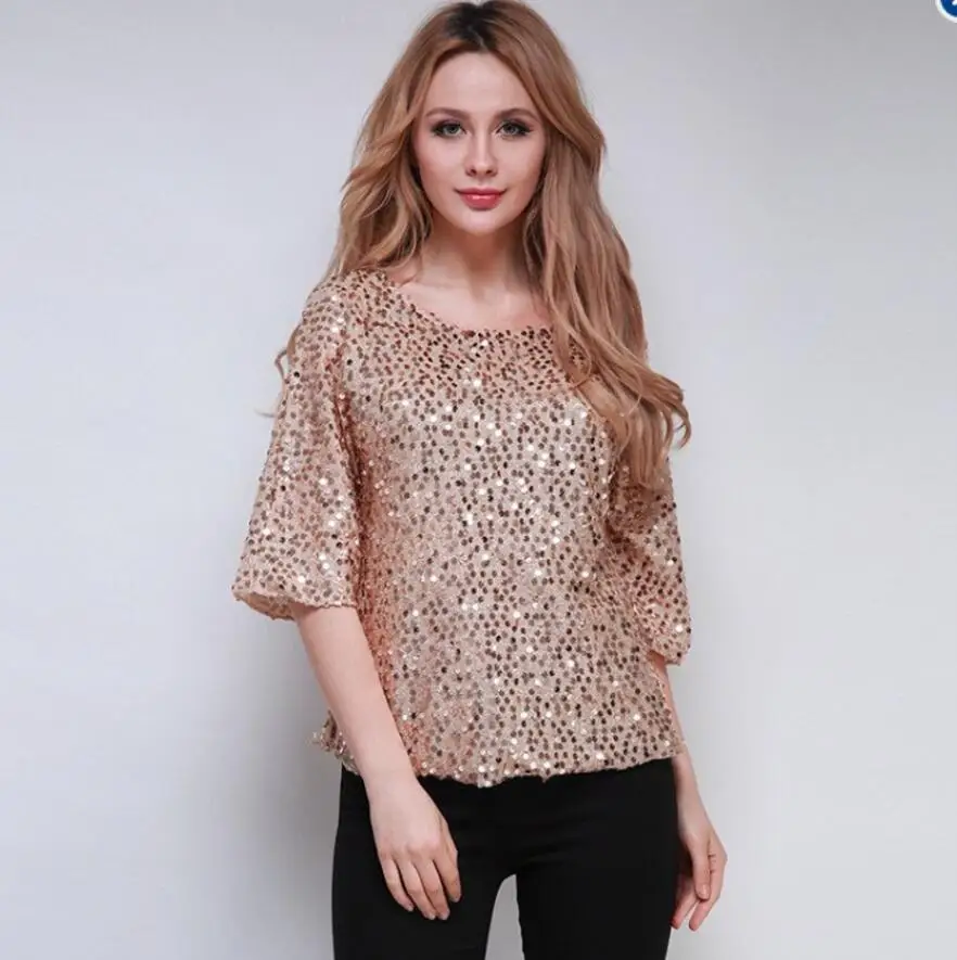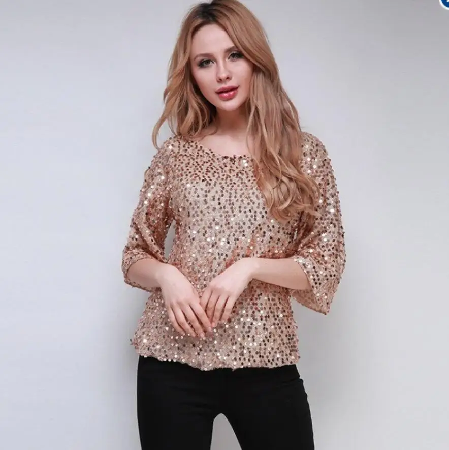 Размера плюс S-5XL, Женская пикантная блестящая блузка с круглым вырезом, Повседневная рубашка, женская одежда, рубашки шифоновая блуза, женские топы, блузки