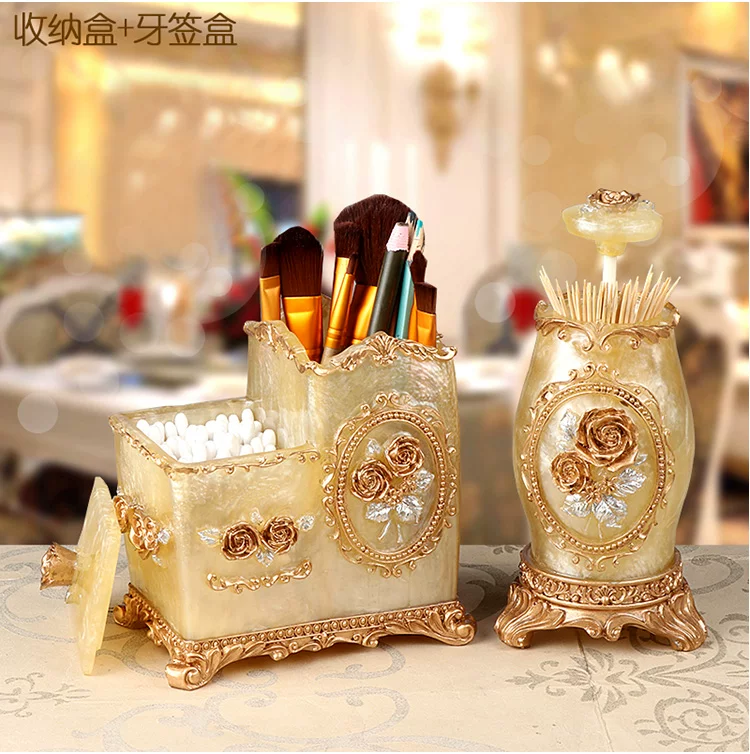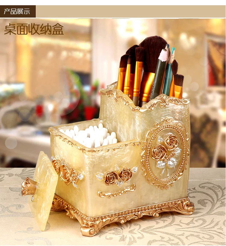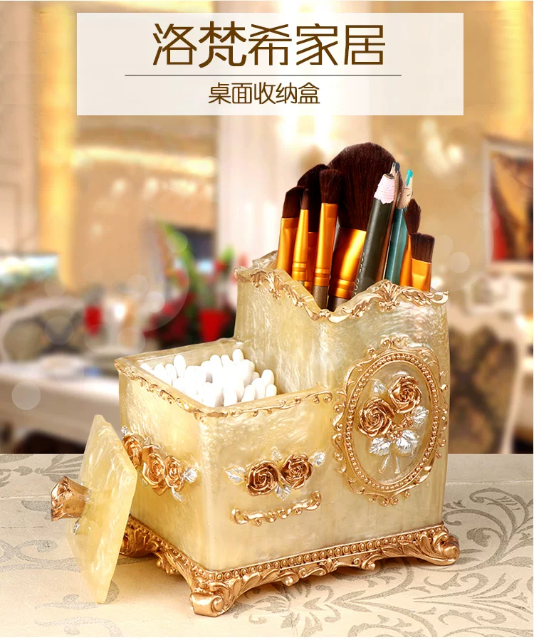 Настольная коробка для приема, европейская креативная Роскошная простая косметика, ватный тампон, многофункциональная Косметическая щетка, цилиндр для кистей