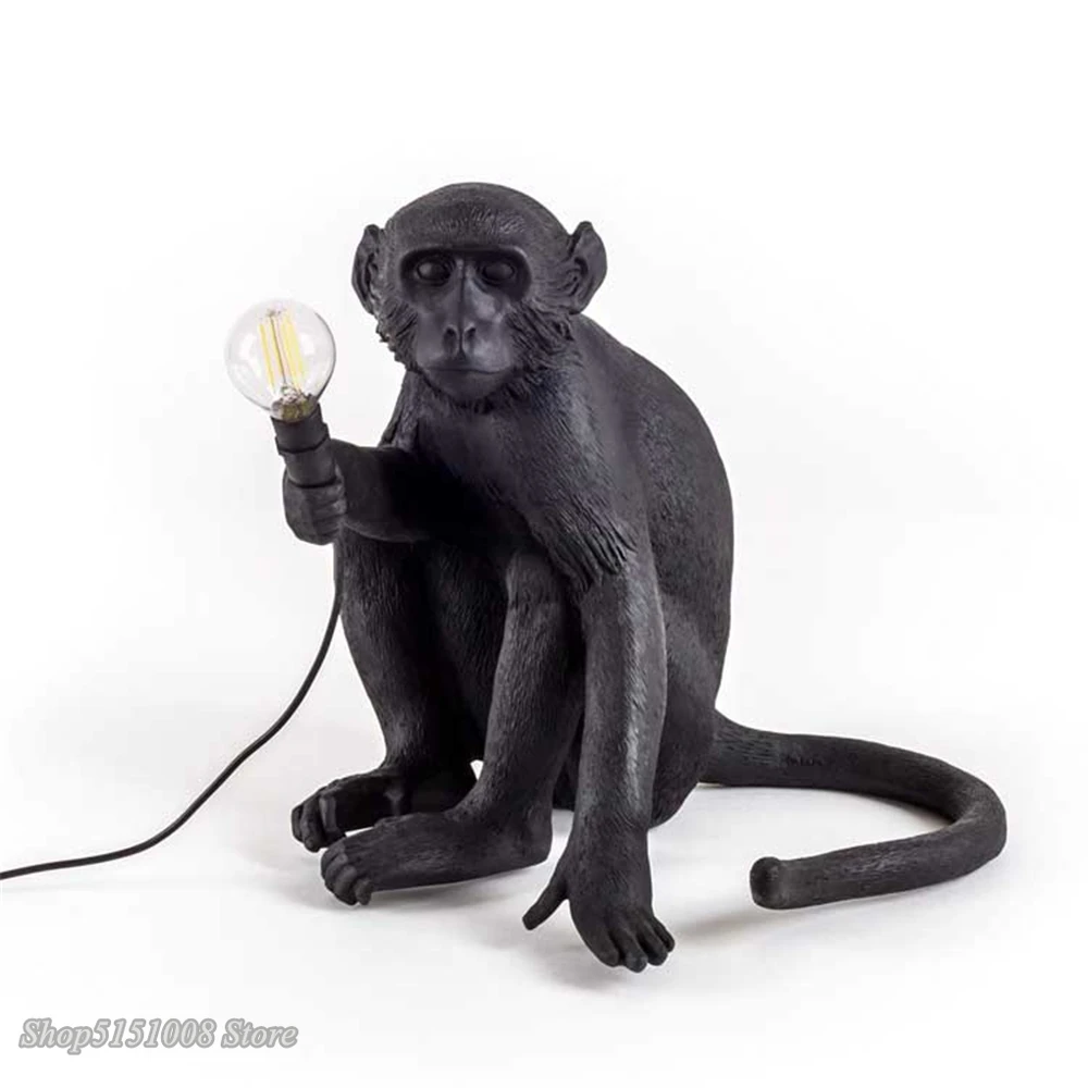 Современные подвесные светильники из пеньковой веревки, черные полимерные лампа в форме обезьяны, светильник в американском стиле, в стиле лофт, индастриал, украшения для дома