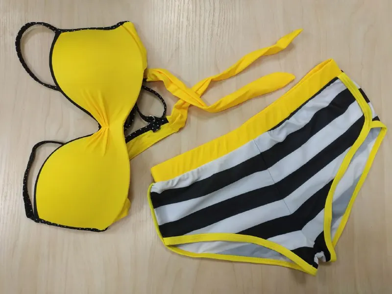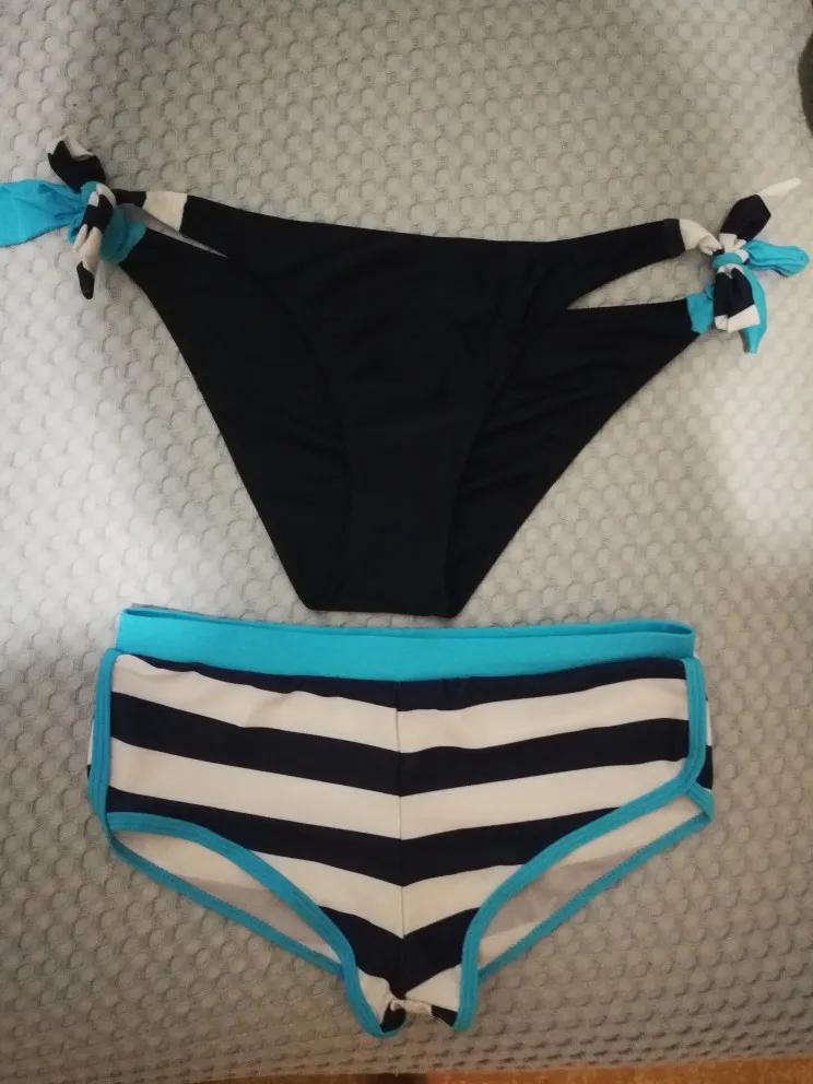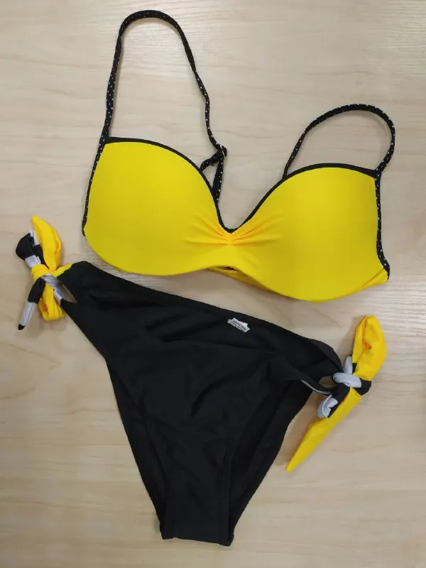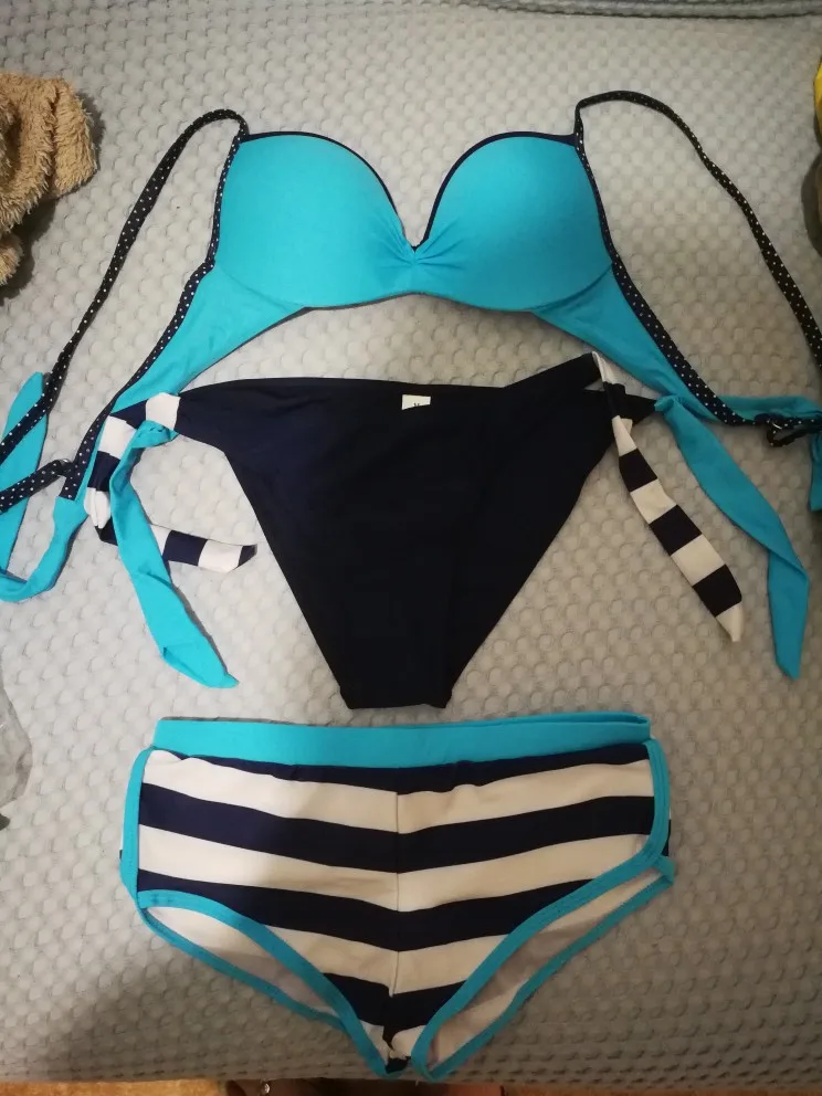 Шикарный купальник! Трусики по бокам на завязках, бюстгалтер сзади на завязках. Шортики как будто маломерят, на толстые ляжки сильно давят. Шортики без ластовицы внутри. Бюстгалтер с поролоновыми чашками внутри, пушапа нет.