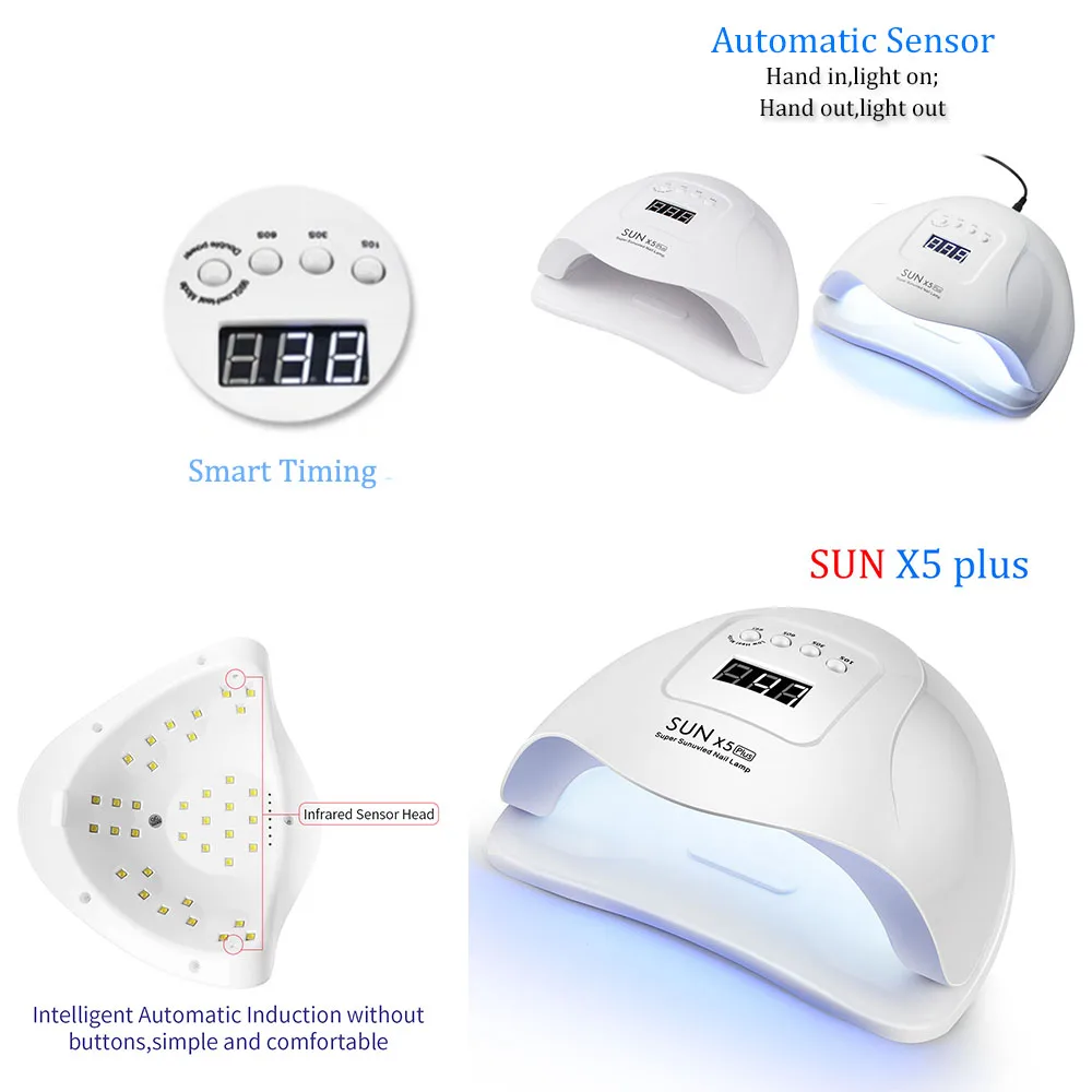 Ультрафиолетовая лампа для ногтей, 72 Вт, 5 Plus, светодиодная лампа для сушки ногтей, для любых гелей, лака, лампа, светодиодный маникюр, инфракрасный датчик, таймер, умный