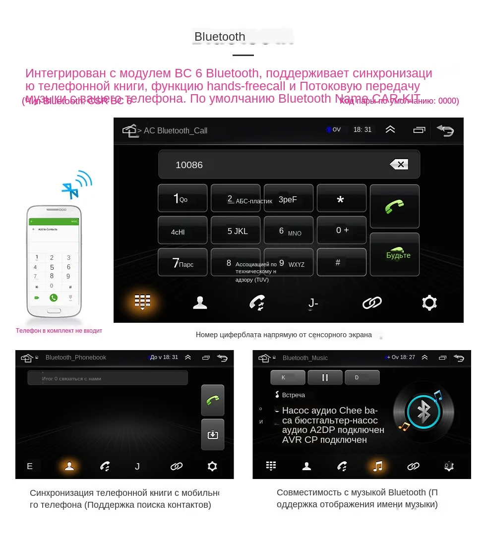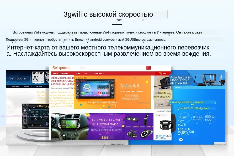 Высокоскоростной 3G и WiFi Интернет:Система поддерживает интернет-серфинга через 3G или WiFi. Поставляется с WiFi модулем. Вы можете выполнить поиск Google в дороге с помощью коробки быстрого поиска, играть в онлайн-игры, смотреть видео, загружать онлайн-данные и проверять электронные письма, Подключаясь к любой точке доступа Wi-Fi в диапазоне или 3g в Интернете. Загрузка приложения:Он заменяет ваше заводское радио с системой на базе android отличной утилиты и расширяемости. Вы можете скачать любые приложения на рынке android для доступа к играм, Skype, MSN, YouTube, twitter, электронной книге, Gmail и т. Д. эта система также поддерживает установку или удаление приложений на оперативной памяти или SD. 3D навигация:Автомобильный стерео оснащен во всем мире функцией навигации в реальном времени высокой точности. Благодаря текущему местоположению, скорости, пробегу, знаковому дисплею здания, 3D виду улицы, поиску места назначения и поворотным голосовым указаниям, он станет вашим идеальным спутником. С функцией dual zone, музыка с радио/AV/DVD/TV и т. Д. Может воспроизводиться за сценой в режиме GPS, и она автоматически переключается на голос GPS. Радио тюнер:С 6851 радиочипом, встроенный с сильным цифровым FM/AM радио тюнером, эта система A/V автомобиля имеет поиск радиоканалов автоматически, вручную и хранение их в процессе. Bluetooth:Он обновляет ваш автомобиль с Bluetooth модулем MT6625N_QFN40 для звонков без рук и потоковой передачи музыки. С мелодиями звонка и голосом, выходящими из автомобильных динамиков, вы можете набрать, ответить, отклонить и отключить звонки, не снимая руки с руля. Функция телефонной книги позволяет осуществлять поиск контактов непосредственно на большом экране головного устройства. Также желательно передавать любимые мелодии со смартфона по беспроводной сети. Внутренний микрофон входит в комплект для разговора без искажений. Офисные инструменты:Вы можете читать и редактировать офисные файлы, такие как WORD/EXCEL/POWERPOINT/PDF/TXT на планшете. Управление файлами:С файловым браузером вы можете открывать файлы с соответствующими приложениями, искать файлы и управлять ими. HD 1080 P видео:Воспроизведение видео в формате HD 1080 P поддерживается этим автомобильным dvd-плеером. AUX:Эта функция предназначена для аудио, видеовхода и вывода с внешних устройств. Управление рулем:Управление рулем вашего оригинального автомобиля будет работать после установки. 32 Гб USB/SD Подключение:С разъемами USB и SD объемом 32 Гб этот блок позволяет воспроизводить аудио и видео, просматривать фото, читать электронные книги и т. Д. С SD или USB. MP3, WMA, AAC, RM, LFAC audio formarts, MPEG-1/2/4, H264, H263, VC1, RV, RMVB, DivX, Sorenson SparK, Spark, VP8, AVS Stream видео и JPG/BMP/JEPG/GIF/PNG изображения поддерживаются. Зарядка IPod/IPhone:Этот Мультимедиа поддерживает зарядку вашего iPod/iPhone через usb-кабель. Языки OSD:Поддерживаются 37 видов языков OSD, включая: Китайский традиционный, китайский упрощенный, японский, корейский, арабский, английский (Австралия), английский (Канада), английский (Новая Зеландия), английский (Сингапур), английский (Великобритания), английский (США), африкаанс, индонезийский бахаса, бахаса мелаю, немецкий (немецкий), немецкий (Норвегия), немецкий (Германия), филиппинский, Fancais (Belgique), Fancais (Канада), Fancais (Франция), Fancais (Suisse), Italiano (Италия), Italiano (Svizzera), Kiswahili, Latviesu, Magyar, Nederland, Norsk bokmal, Polski, portugues (Бразилия), Portugues (Португалия), Rumantsch, словенцина, Suomi, svensk, Pyccknn. Элементы дизайна:Живые об