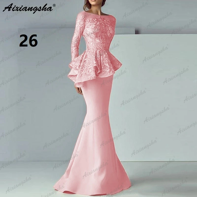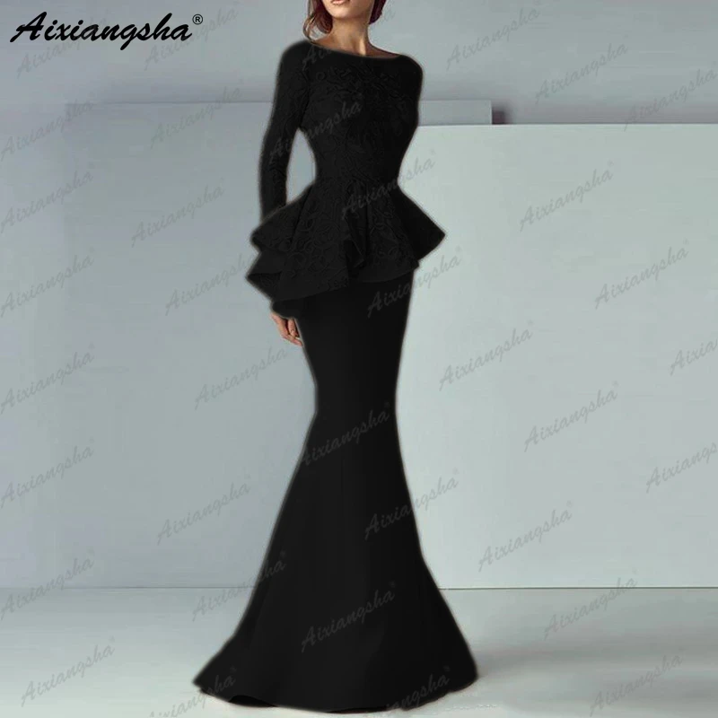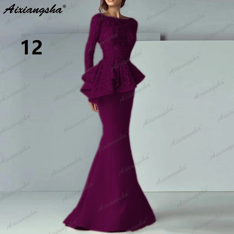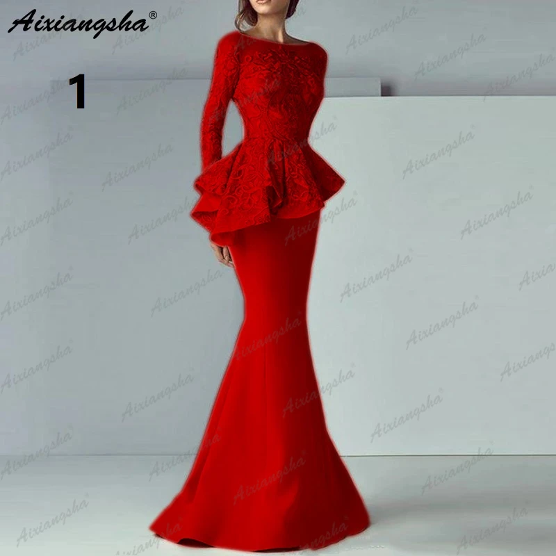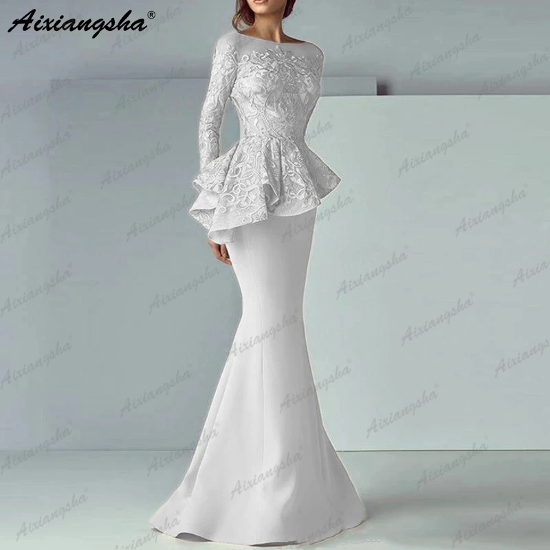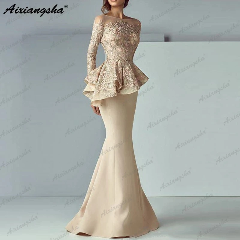 Женское вечернее платье-Русалка цвета шампанского, длинное вечернее платье с длинными рукавами, кружевное платье с баской, элегантное официальное платье
