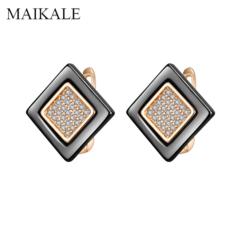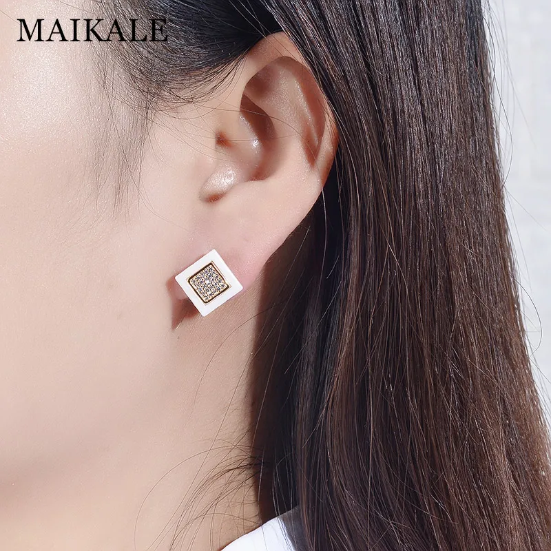 Женские классические серьги MAIKALE, из меди серьги-гвоздики из керамики пробы с золотым покрытием и кубическим цирконием класса ААА