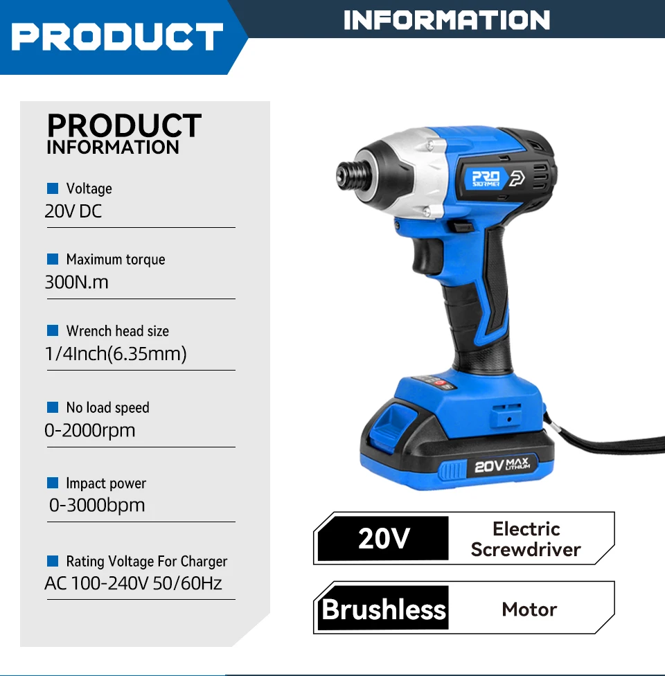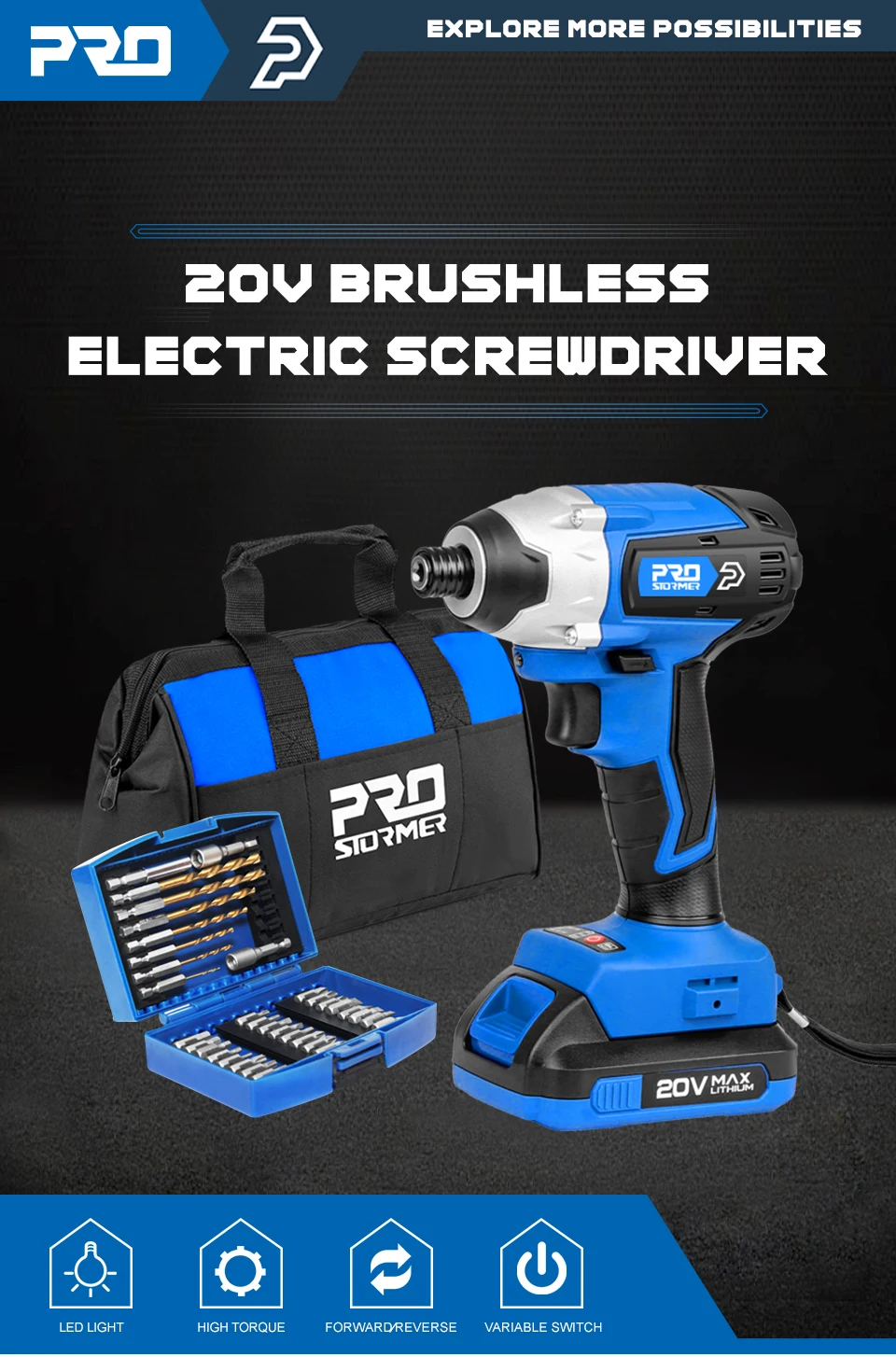 300 нм электрическая отвертка, беспроводная дрель, бесщеточный двигатель, комбинированный комплект, 34 шт., сверла, 20V электроинструмент от PROSTORMER