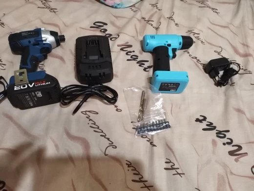 Купил гайковёрт и шуруповёрт, попробовал крутить привычные саморезы, шуруповёрт крутит очень бодро, закручивает со свистом 100 е саморезы, на боку написано 35 ньютонов, до этого работал макитой 30 ньютонов, она не могла крутить на высокой скорости такие саморезы, а теперь стала старенькой и на понижающей не крутит, гайковёрт сравнить не с чем, но работает отлично. Весь комплект прислали в точности как в описании, упаковано очень хорошо.