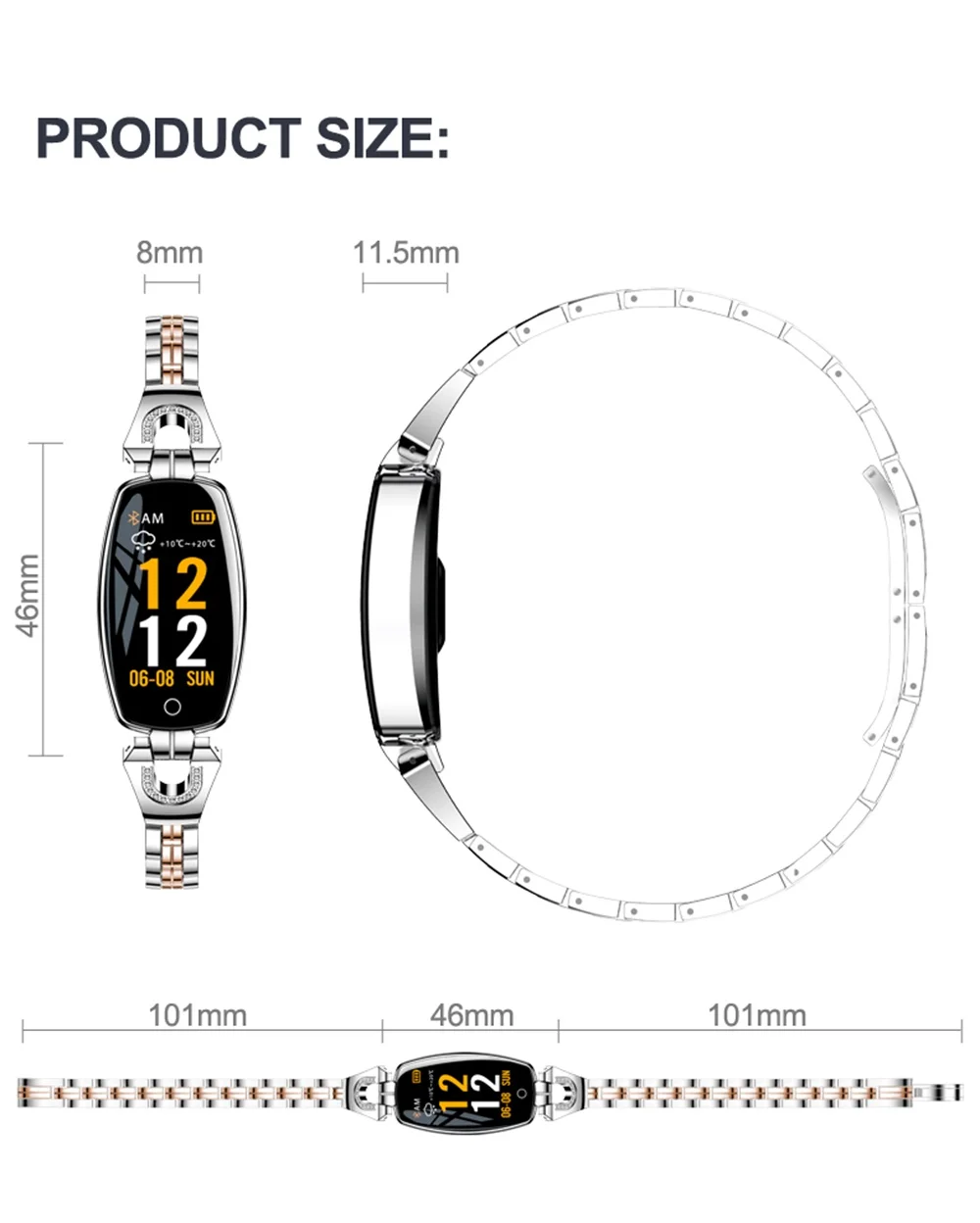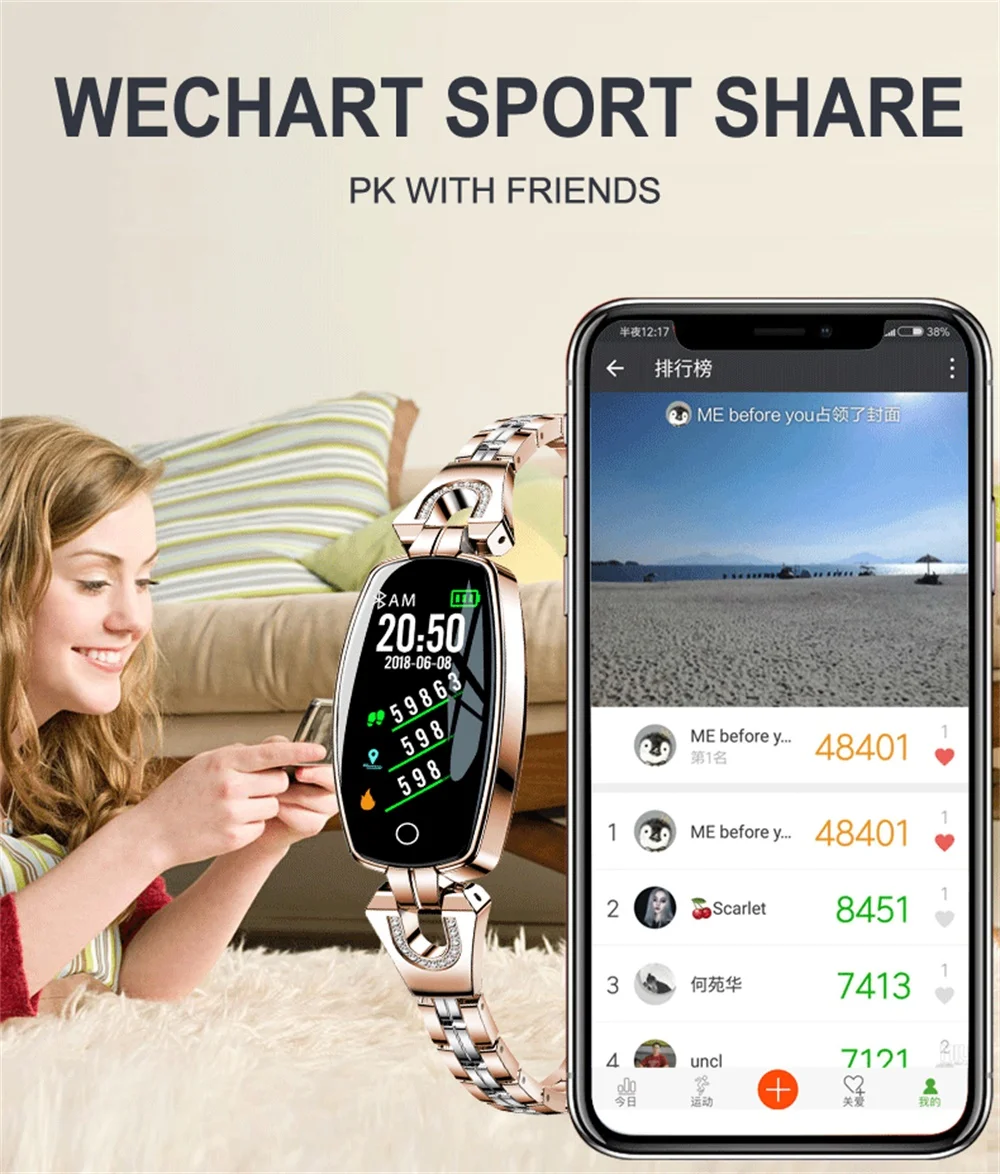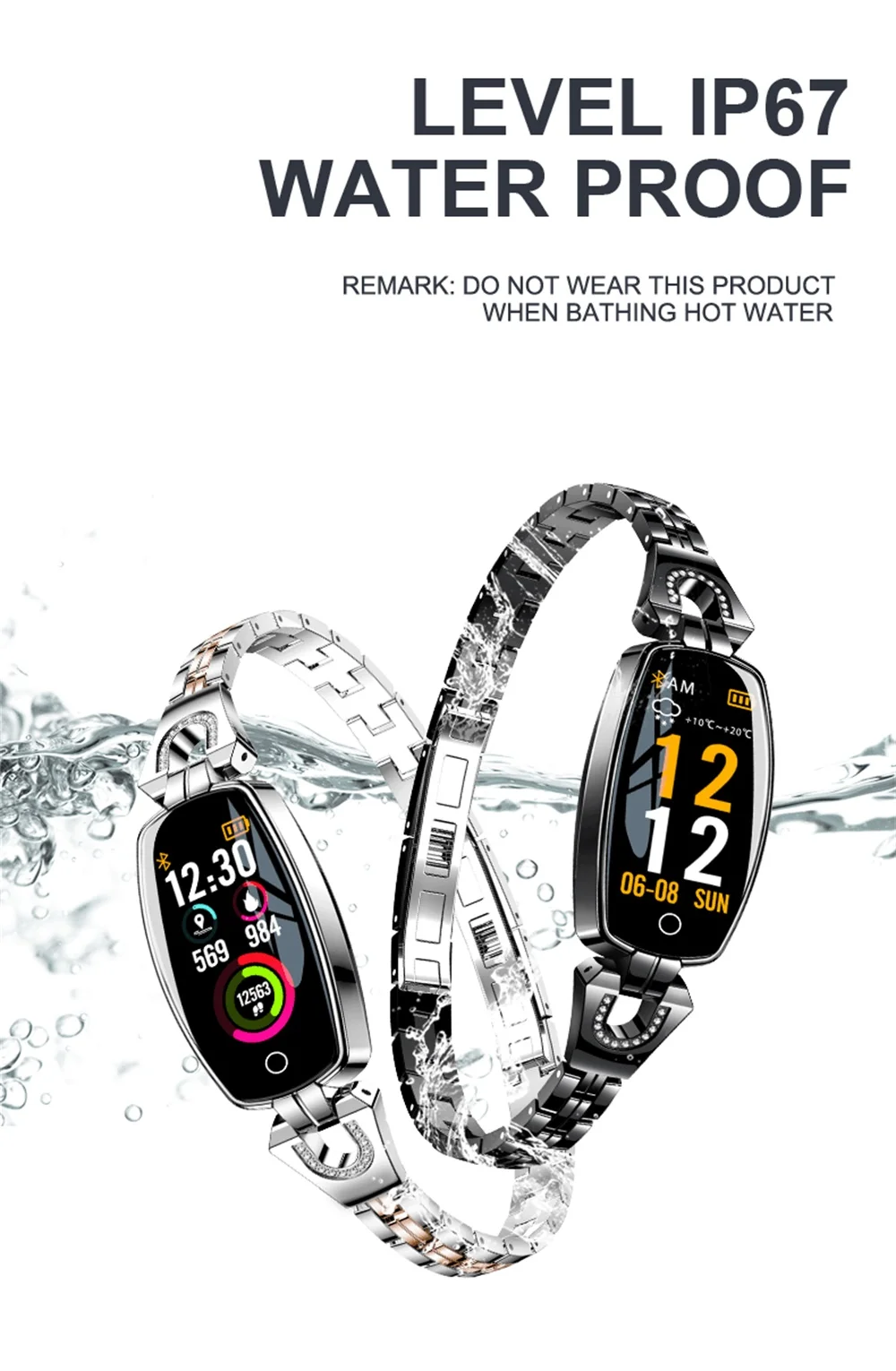 696 H8 Модный женский умный браслет часы с пульсометром фитнес-трекер H8 Pro H8pro браслет с алмазами умные часы IP67 водонепроницаемые