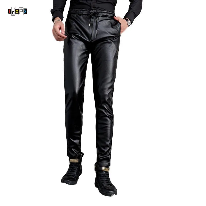 Штаны мужские из искусственной кожи, с эластичным поясом, на шнурке