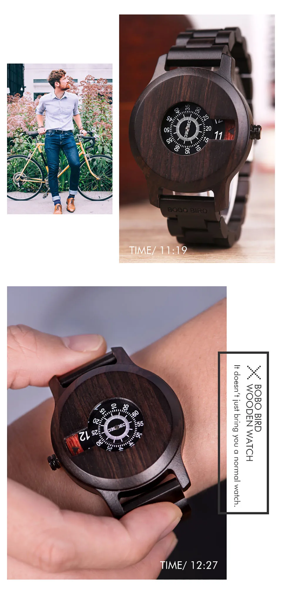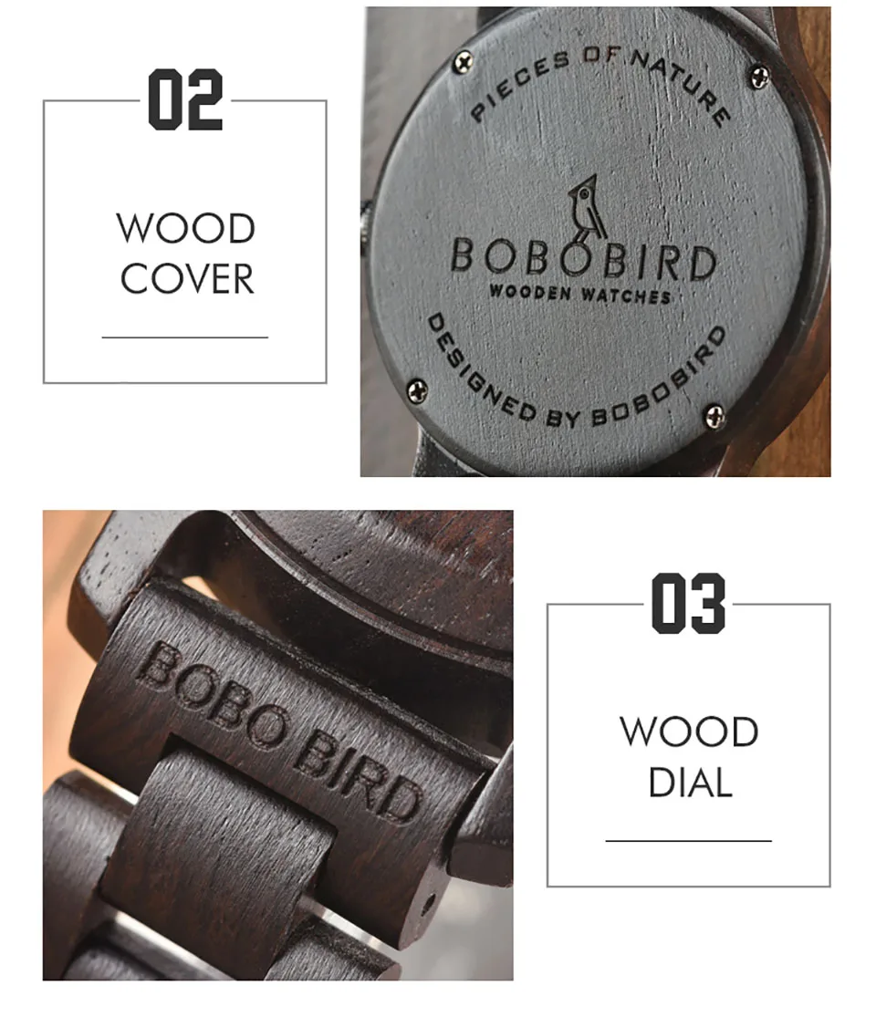 Часы кварцевые брендовые BOBO BIRD Wood часы из черного дерева, специальный циферблат, минималистский дизайн, erkek kol saati J-R26