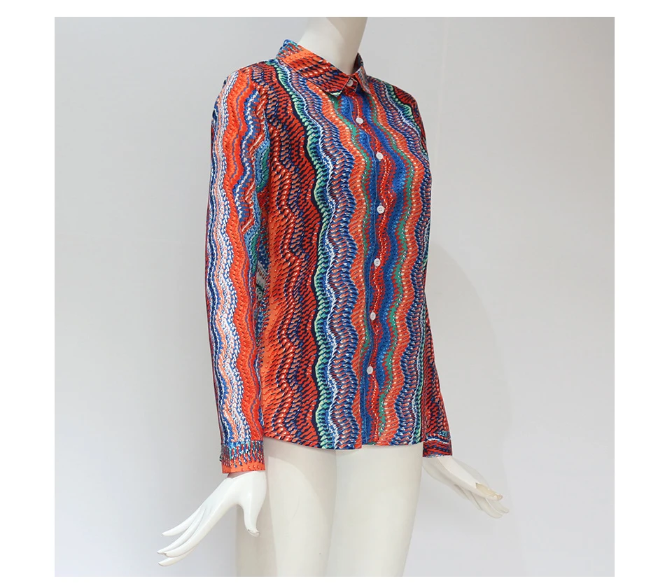 Блузка очень понравилась. На рус. 54 размер идеально сел XXXL. Выбирала по таблице. Сзади полукруг. Длиннее чем спереди. Красиво смотрится на выпуск с брюками и джинсами. Быстро доставили. Материал полиэстер электризуется, но просто постирать надо с кондиционером и, думаю, будет отлично. Спасибо.