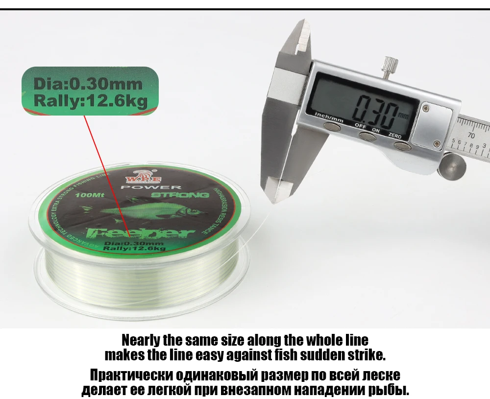Фидерная нейлоновая рыболовная леска W.P.E, 100 м, прочная однонитевая нейлоновая леска 0,20 мм-0,60 мм, рыболовная леска для карпа 6,02-37 кг