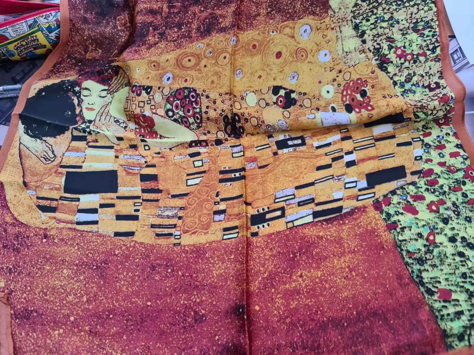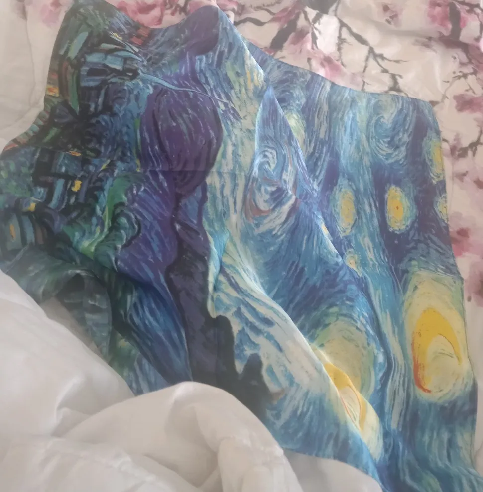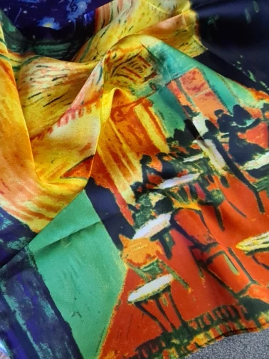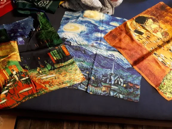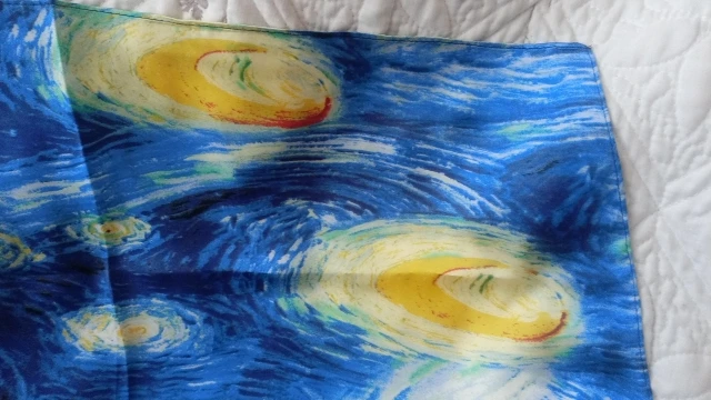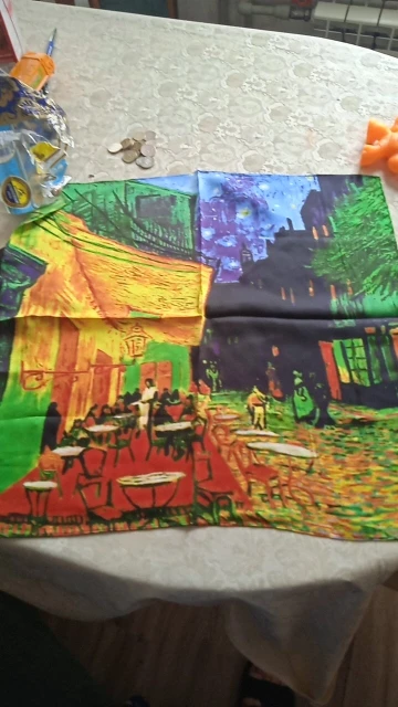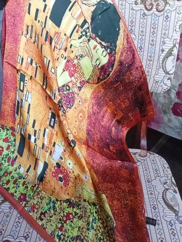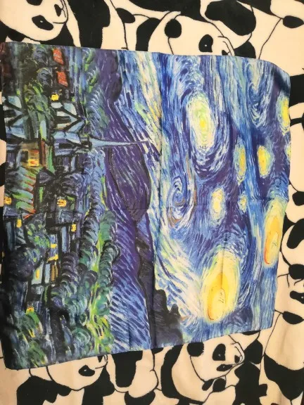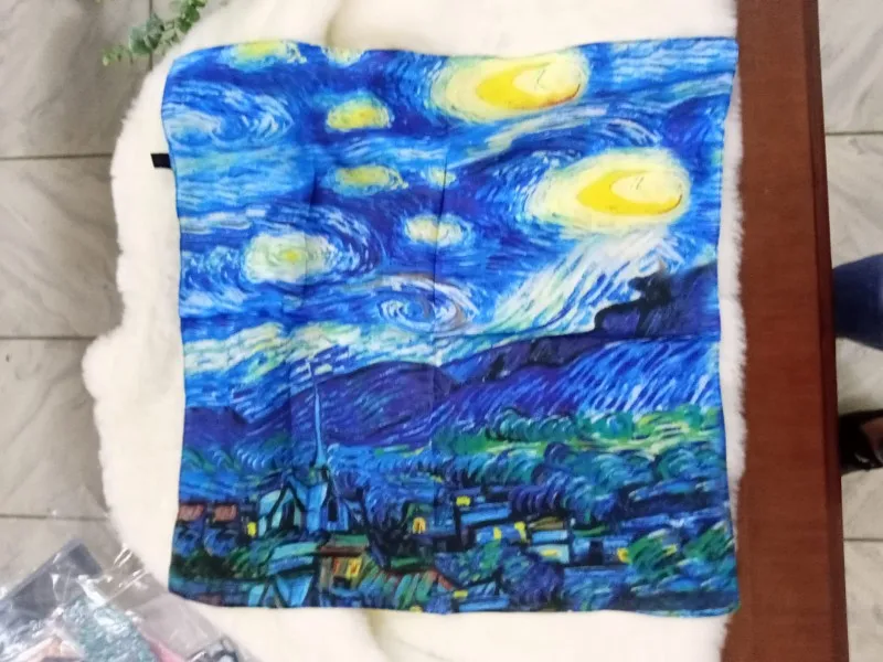Красивый шарф моей любимой картины. Хорошая ткань. То же фото. Arrived soon. Спасибо, мистер продавец.