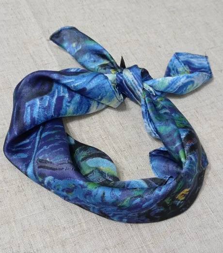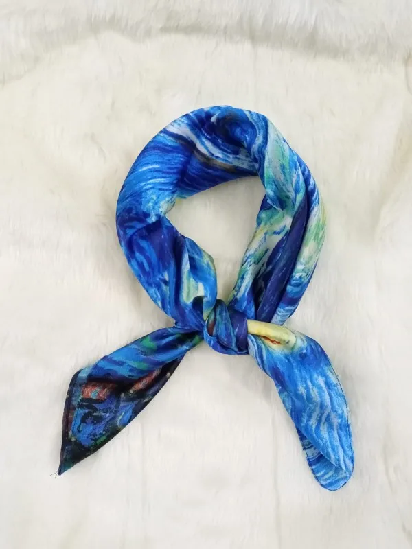 Шарф Ван Гог, женский, Шелковый, квадратный, с рисунком масляными красками