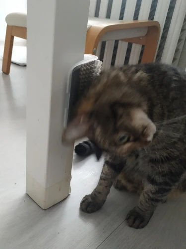 Кот заинтересовался сразу, там же кошачья травка! Моментально оторвал, разобрал крышку. Приклеила, опять оторвал! Убрала изнутри траву, Приклеила, вроде успокоился... Лучше привинтить на саморезики (идут в комплекте).... Надеялась, будет вычесываться(сильно пушистый), но без травки уже потерял интерес... Посмотрим, что будет дальше...