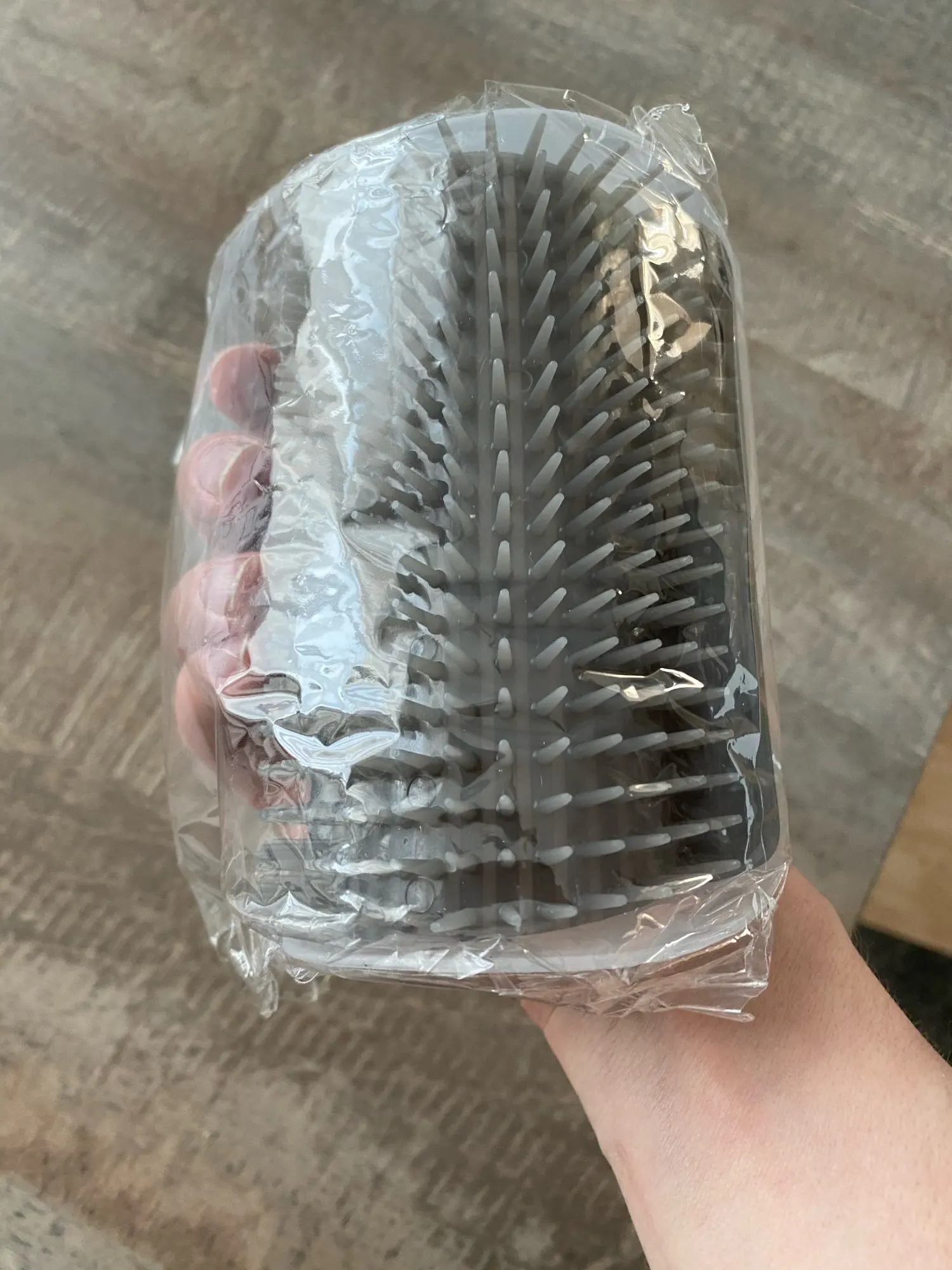 Обычная пластиковая щетка. Кот не оценил, не пользуется. Стоит не дорого, для пробы было не жалко. Доставка 2 недели до Томска