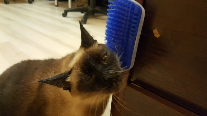 Котэу очень понравилась чесалка. Он доволен.