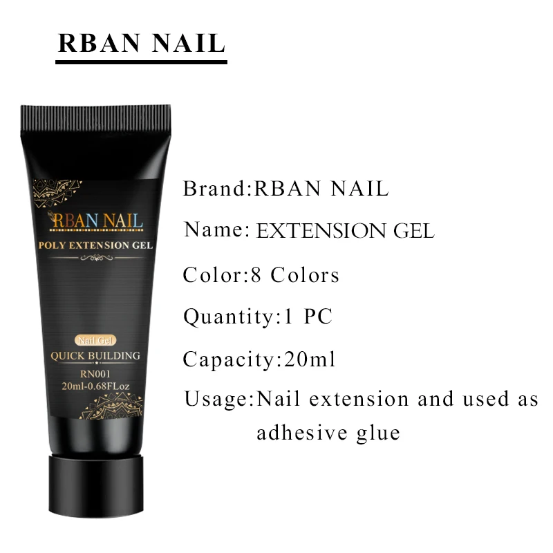 УФ-гель RBAN для наращивания ногтей, акриловый, розовый, белый, прозрачный, быстрое наращивание ногтей, 20 мл