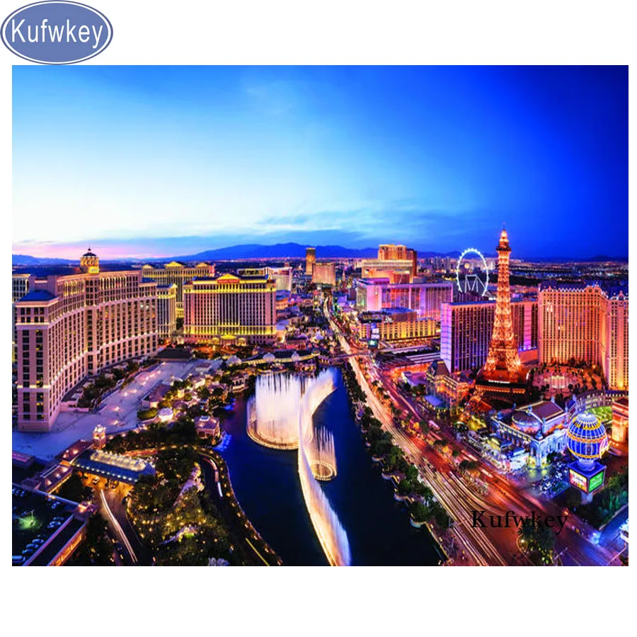 Kufwkey diy Алмазная картина ночные пейзажи квадратные Стразы Алмазная вышивка город Лас-Вегаса msoaic рисунки полная круглая дрель