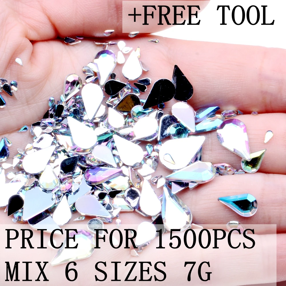 1500 шт, смешанные 7 размеров, набор, кристалл AB, в форме слезы, с...