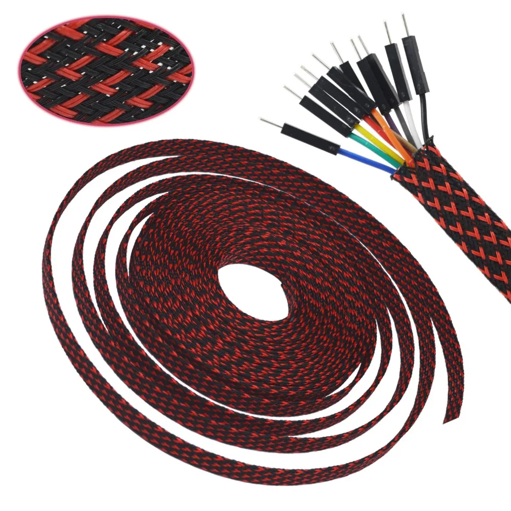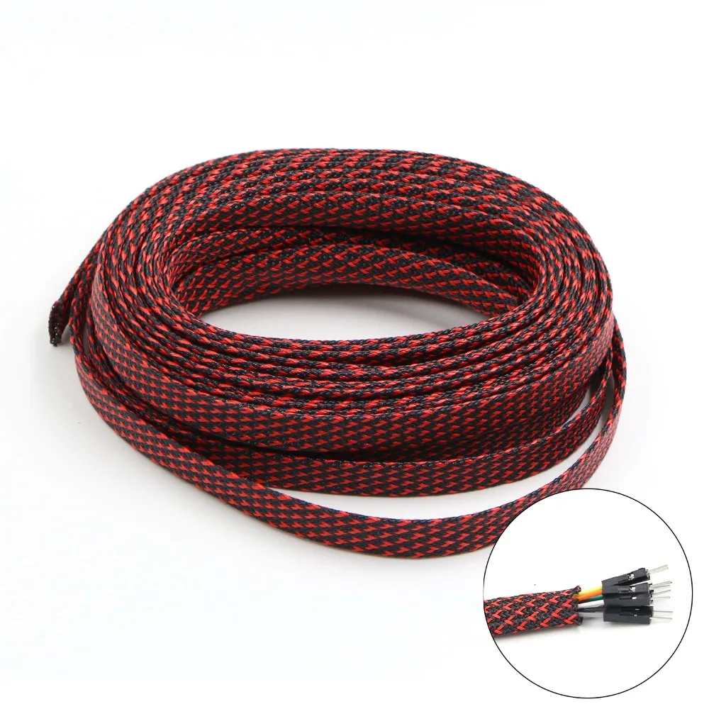 33ft-BlackRed 10 м 4 6 8 10 12 14 16 мм оплетка PET расширяемая муфта Высокая плотность обшивка плетеный кабель рукава ткань