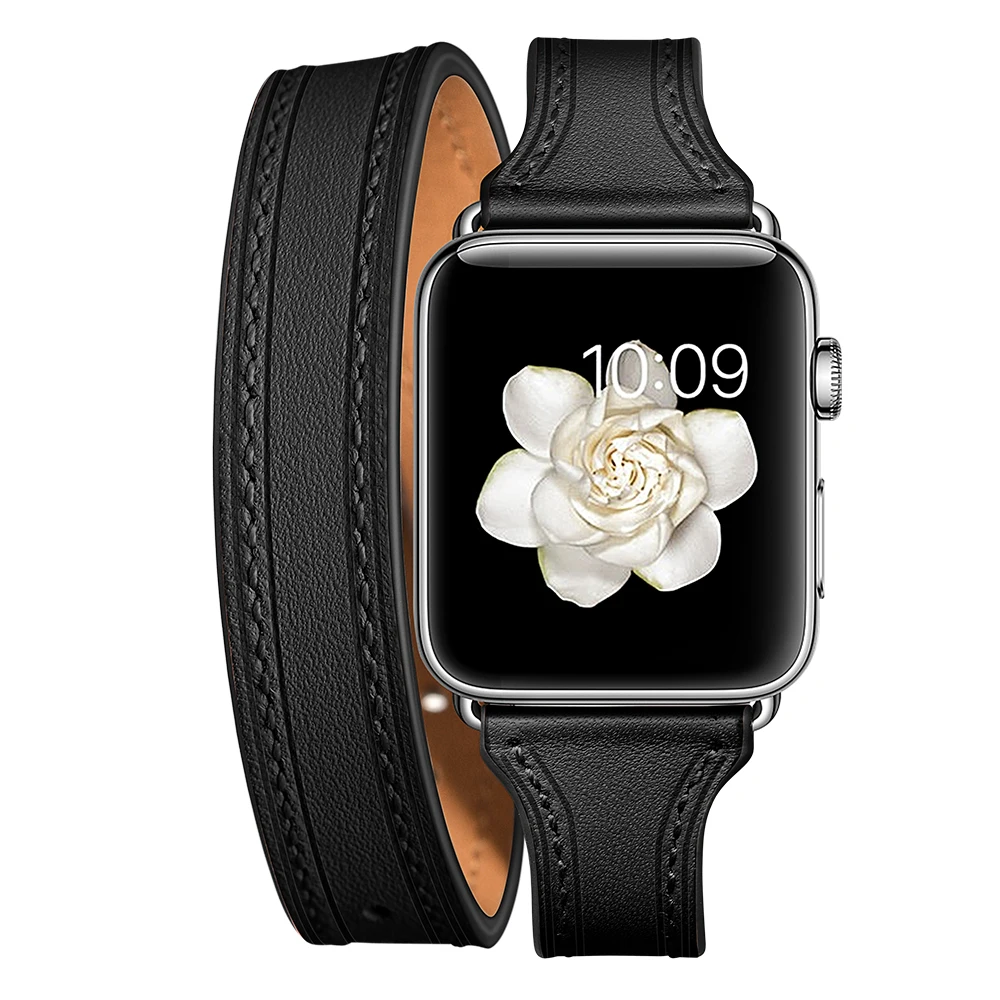 Двойной ремешок для Apple Watch Series 4 3 2 1, кожаный сменный Бра...