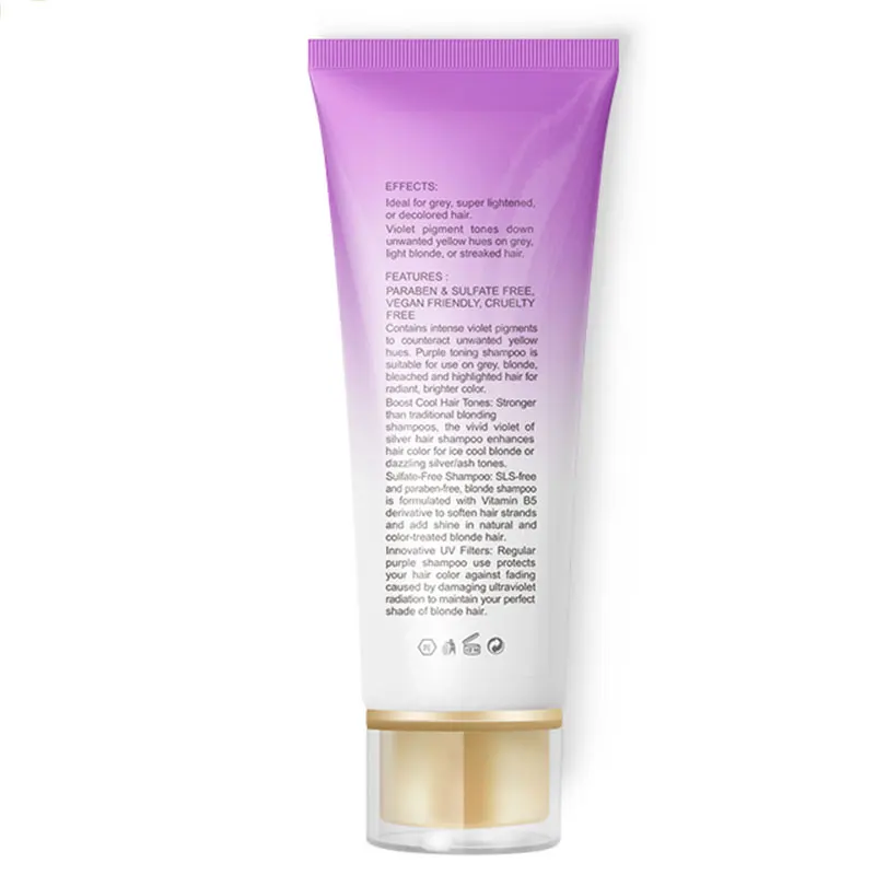 Описание: 1. Этот шампунь можно использовать в серых волосах, светлых, отбеленных и подсвечиваемых для сияющего и яркого цвета. 2. Содержит интенсивные фиолетовые пигменты, чтобы компенсировать нежелательные желтые тона. Фиолетовый тонизирующий шампунь подходит для всех типов волос. 3. Смягчает пряди волос и придает блеск естественным светлым волосам и обновляет тон. 4. Инновационные УФ-фильтры: регулярное использование фиолетового шампуня защищает цвет ваших волос от обесцвечивания, вызванного повреждением. 5. С ультрафиолетовым излучением для поддержания идеального оттенка рубиновых волос. 6. Используйте 2-3 раза в неделю в зависимости от желаемых потребностей. Пожалуйста, используйте перчатки, чтобы руки не стали цветными. Характеристики: Тип: шампунь Пол: унисекс Тип волос: все типы волос s Вес нетто: 100 мл Посылка включает в себя: 1 шт.