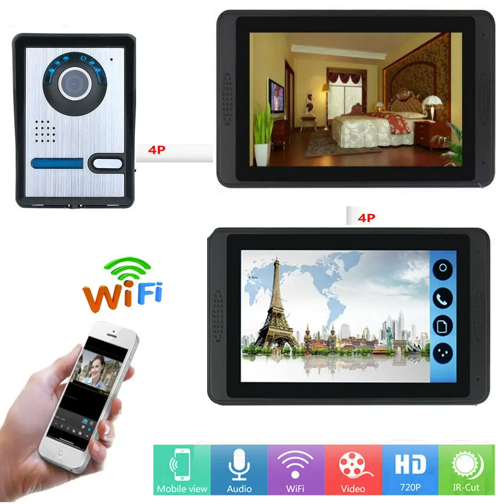 7 дюймов проводной/Беспроводной WI-FI IP видео-телефон двериМобильное приложение с монитором, сфотографируйте,Запись видео вручную и функции разблокировки