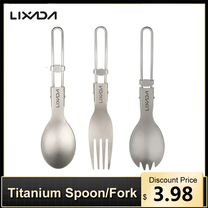 Титановая Ложка Lixada Складная ложка-вилка, складная посуда из титана, легкая ручка для пикника, кемпинга, путешествий