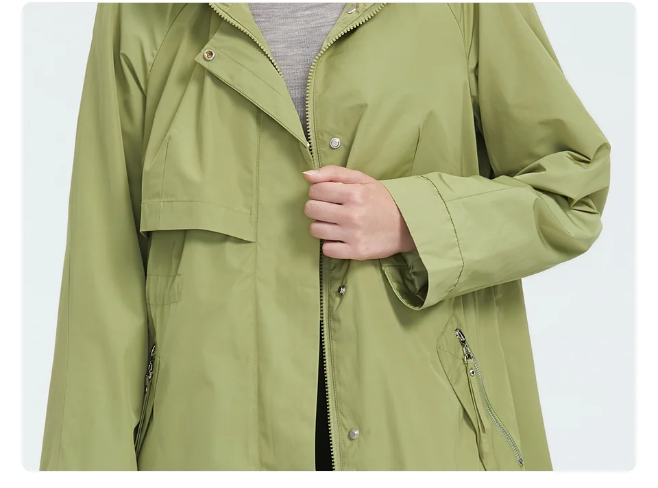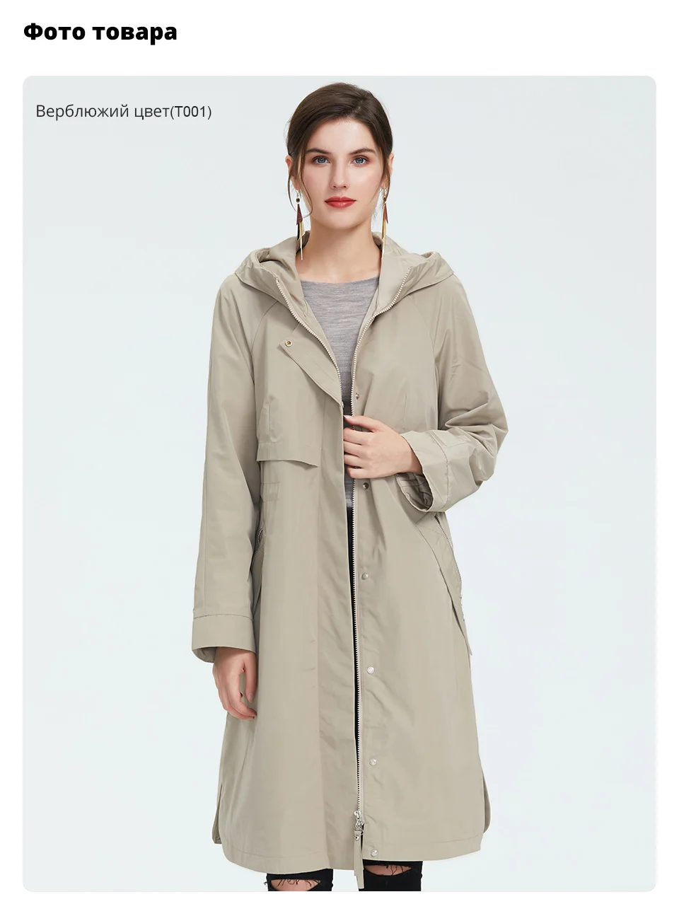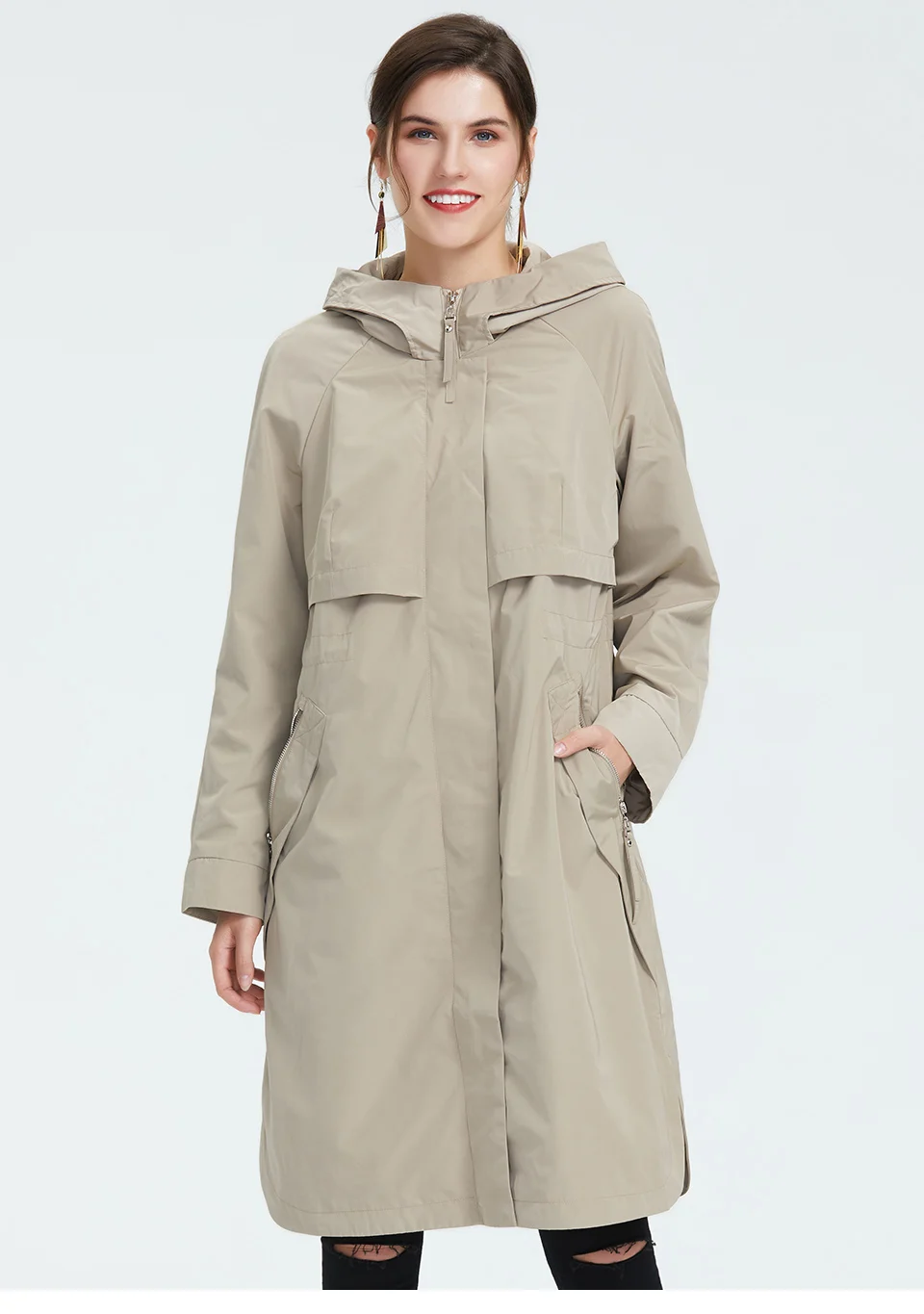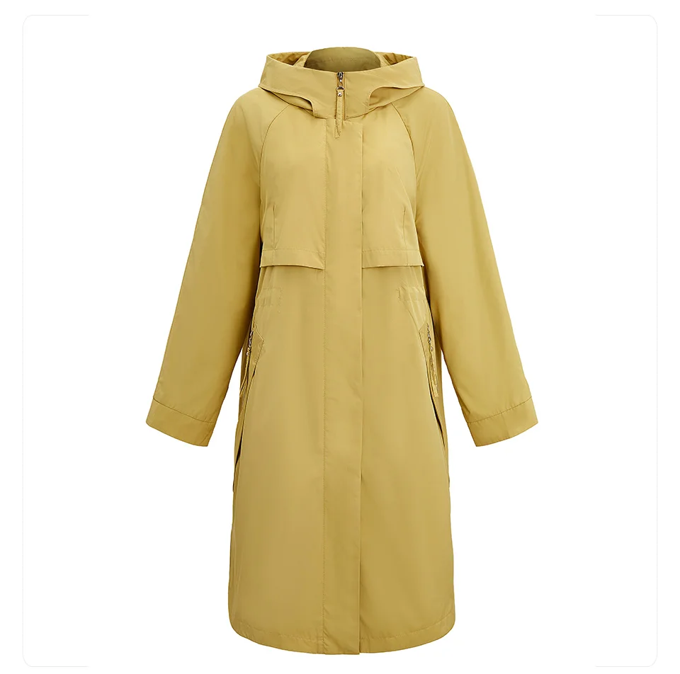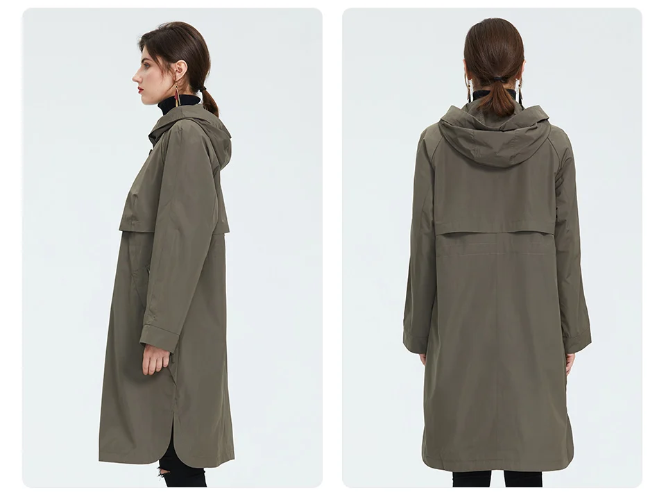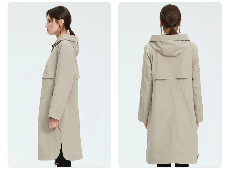 Тренчкот женский весенне-осенний однотонный с длинным рукавом и капюшоном, AS-9046