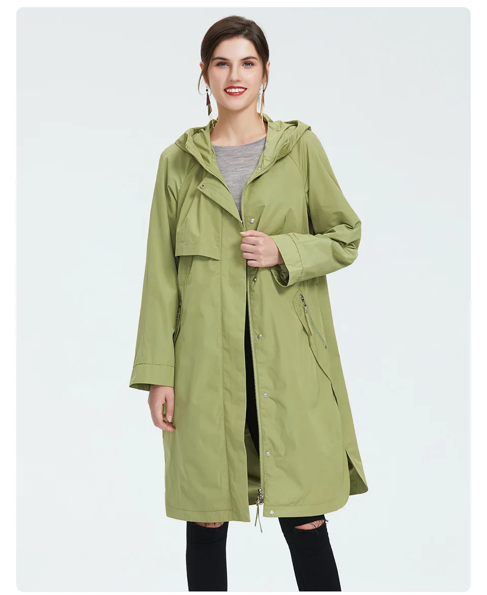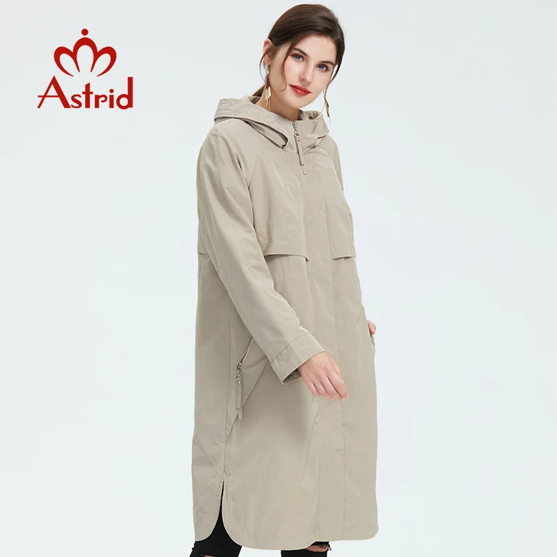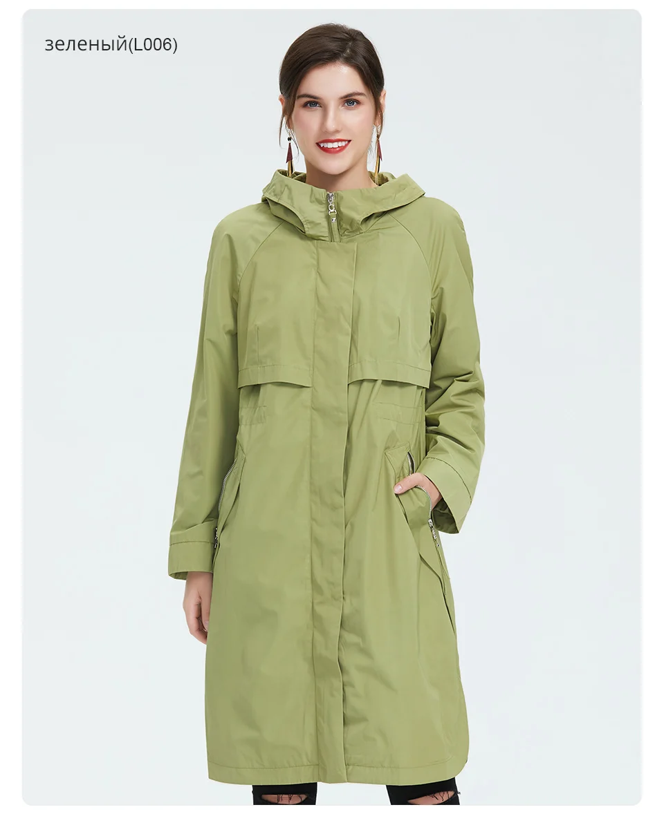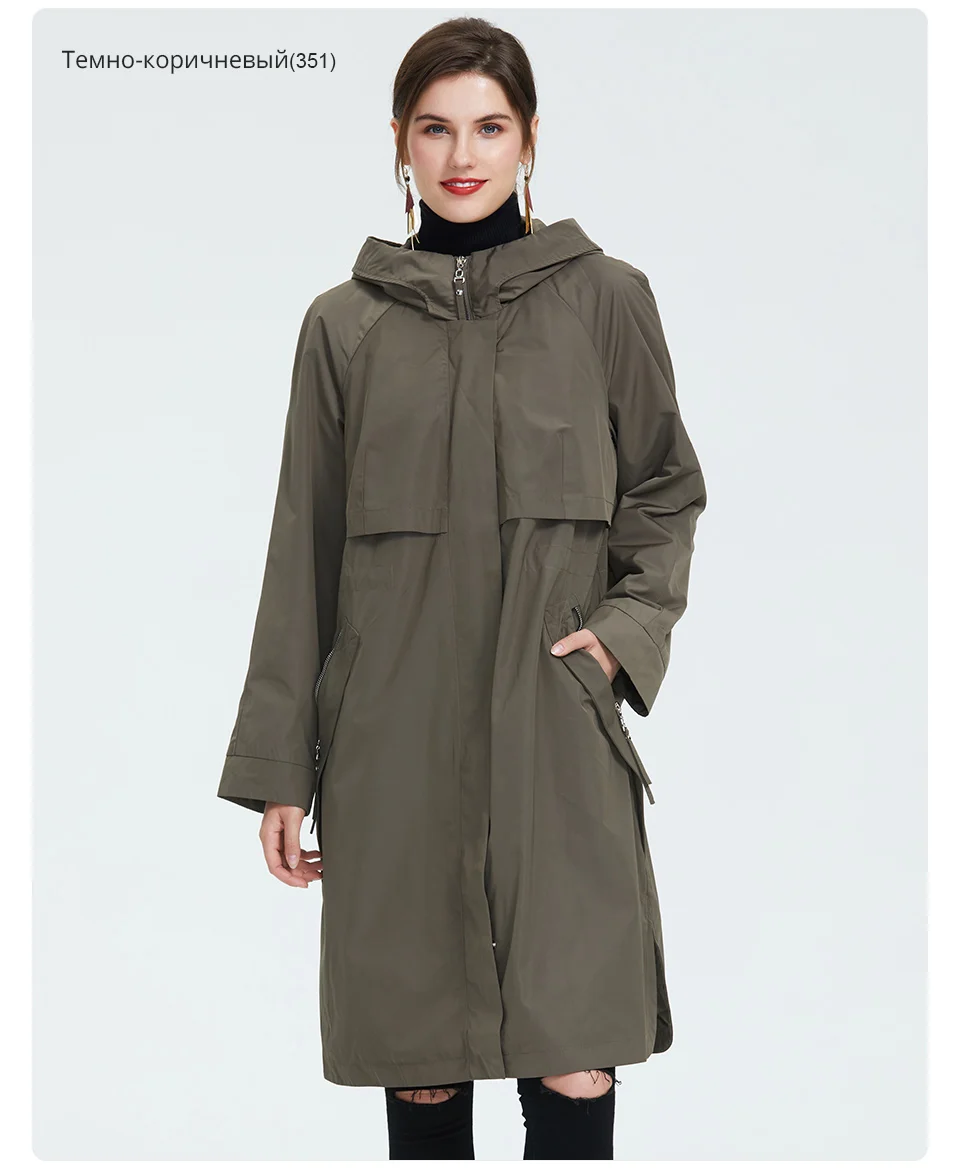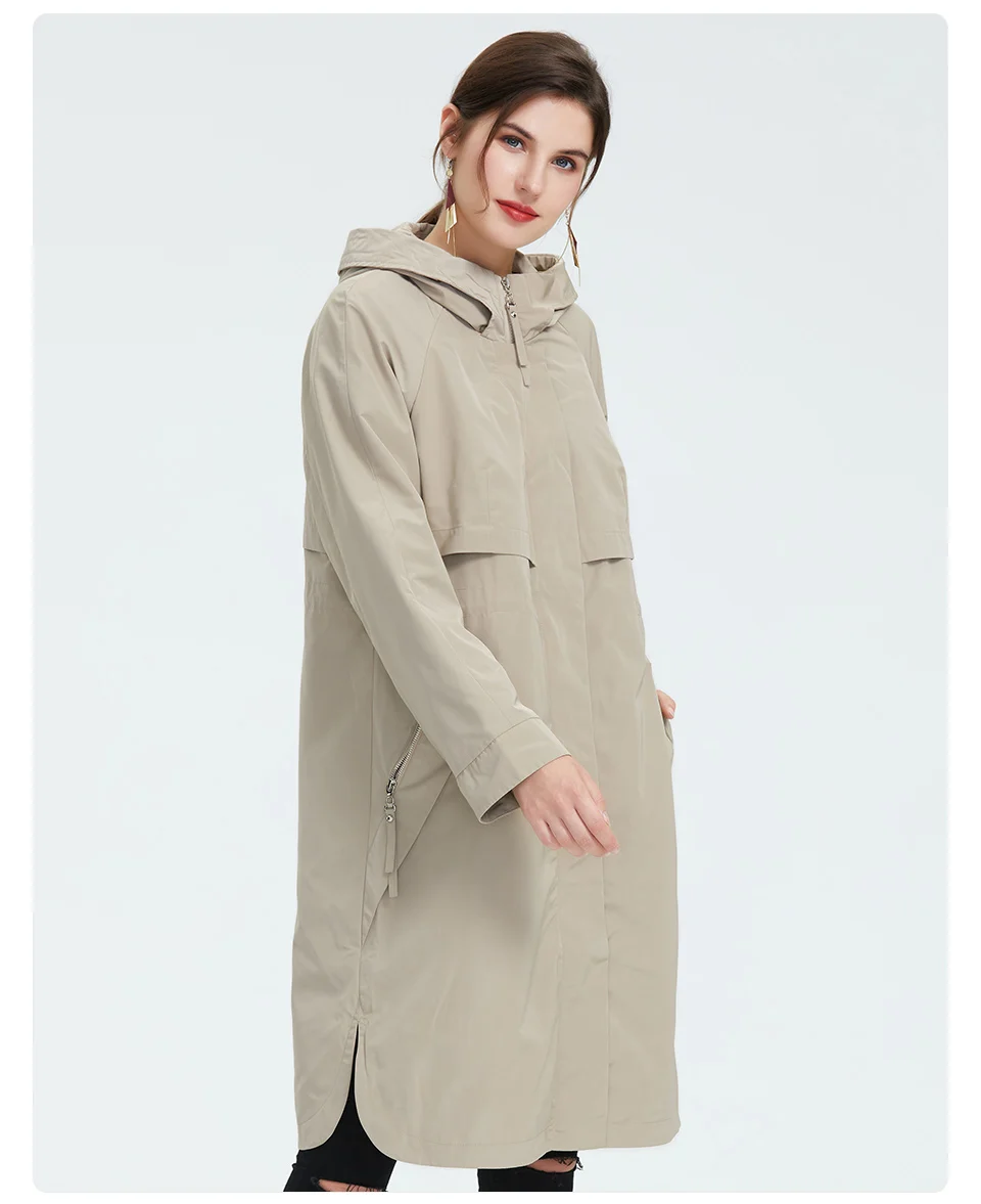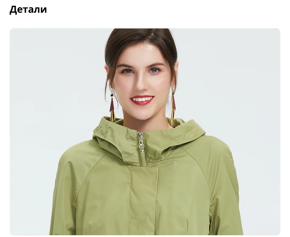 Тренчкот женский весенне-осенний однотонный с длинным рукавом и капюшоном, AS-9046