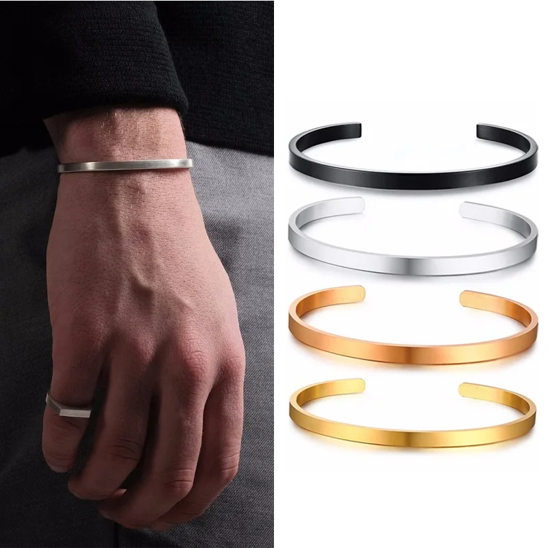 Браслет-манжета из нержавеющей стали 316L с лазерной гравировкой, 4 мм
