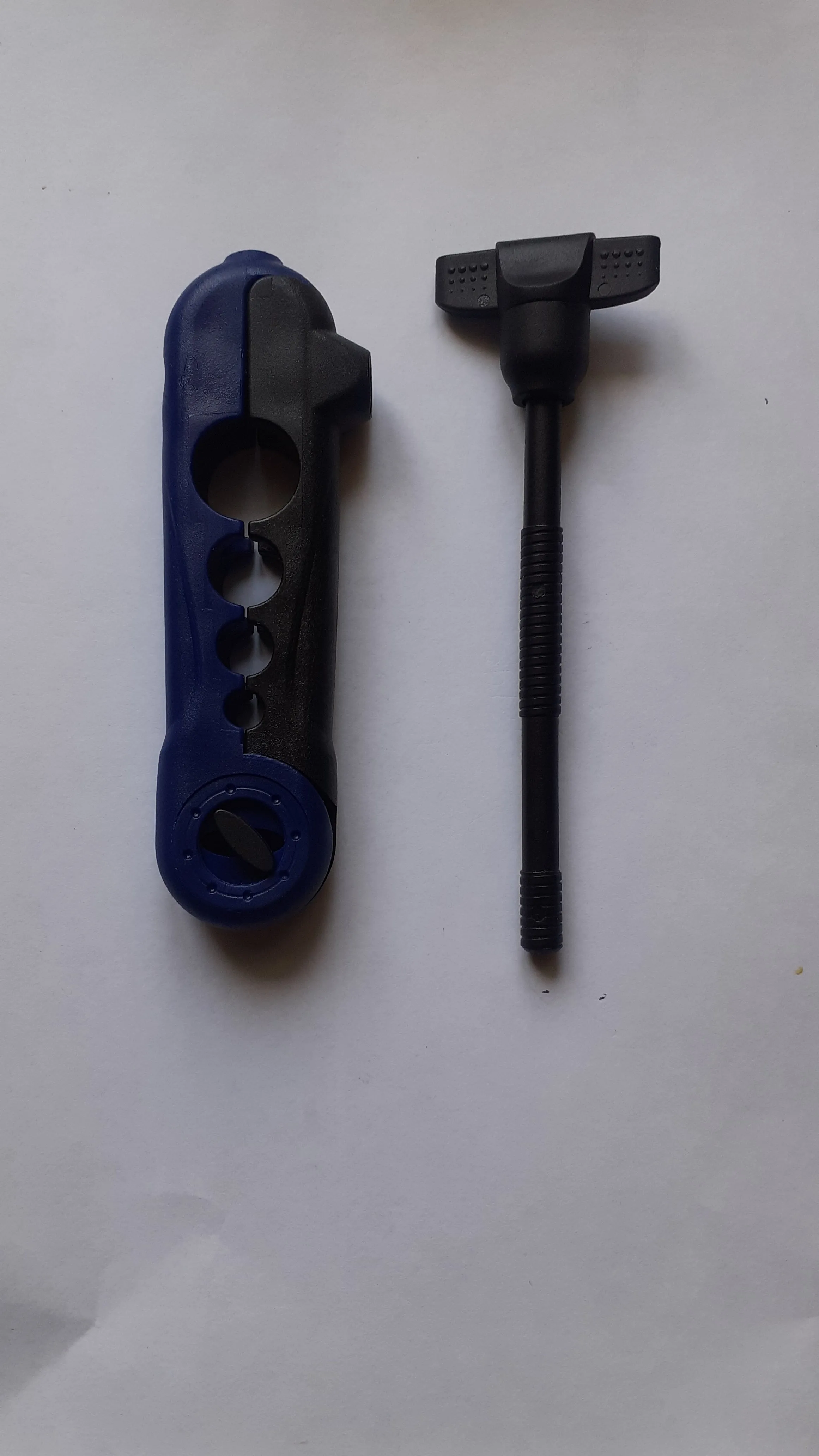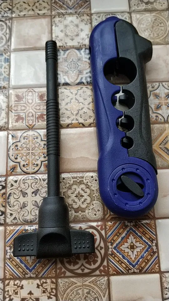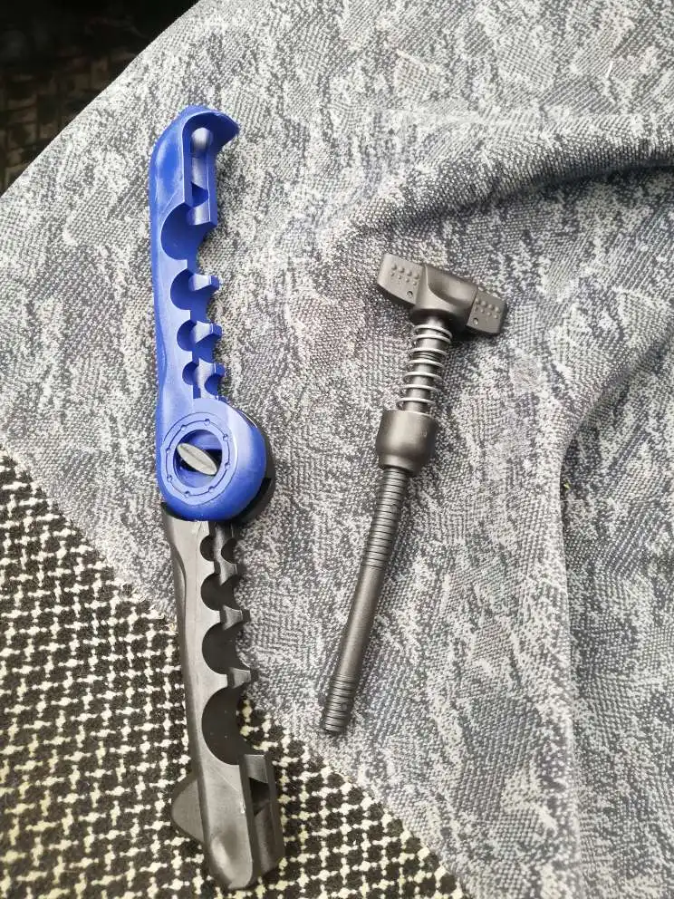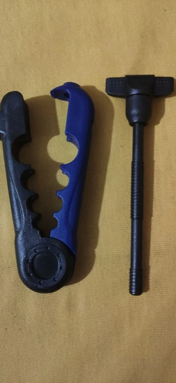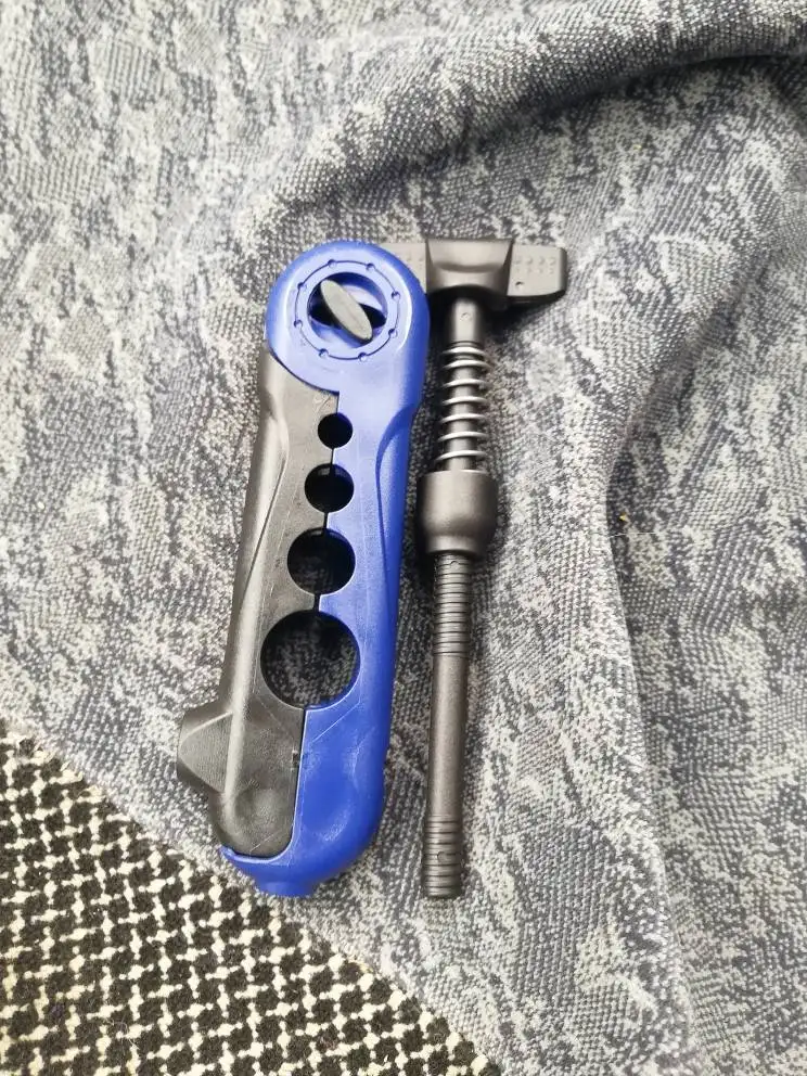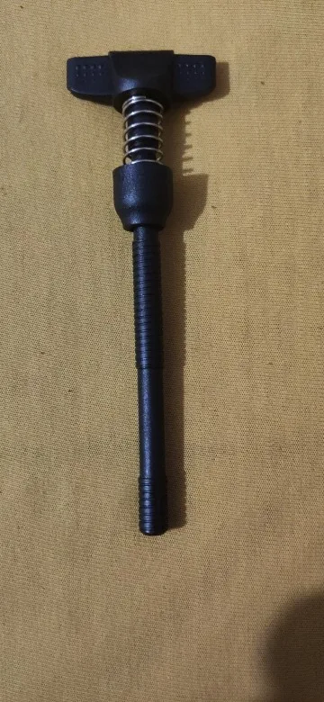 Полностью пластиковая. Насколько долго прослужит - покажет время. Винт имеет две отдельные резьбы - не понятно для чего. Протестить пока не получилось. Но думаю для "экстренных" случаев пойдет.