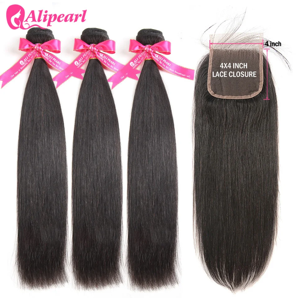 AliPearl человеческие волосы в пучках с 4х4 кружевом, перуанские прямые волосы, 3 пучка с закрытием, Remy Ali, жемчужные волосы для наращивания