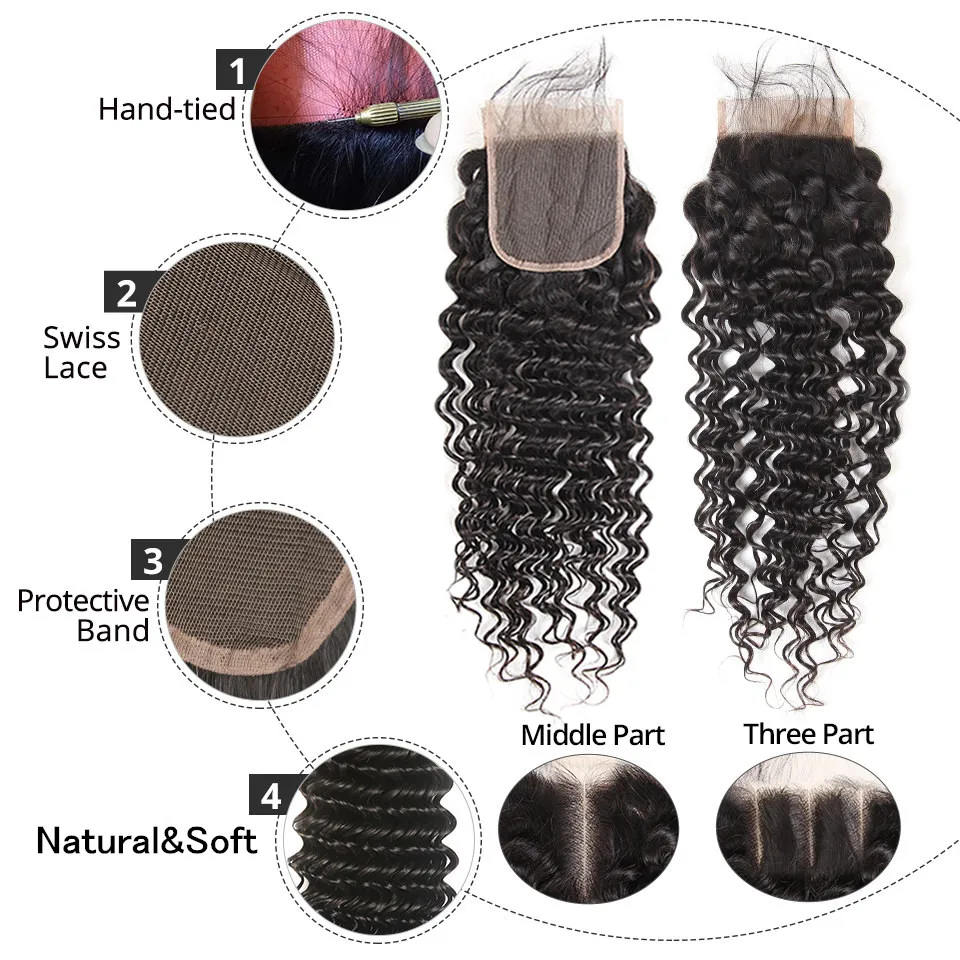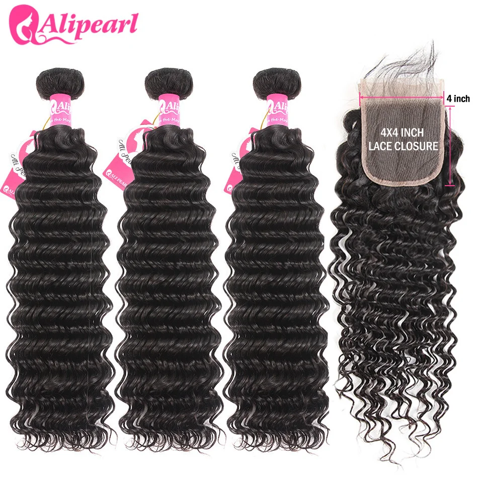 Глубокая волна человеческие волосы пучки с 4x4Closure