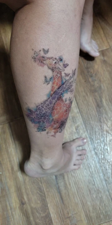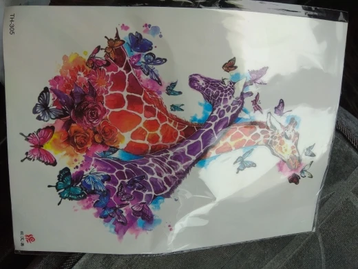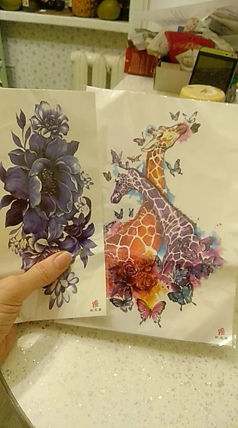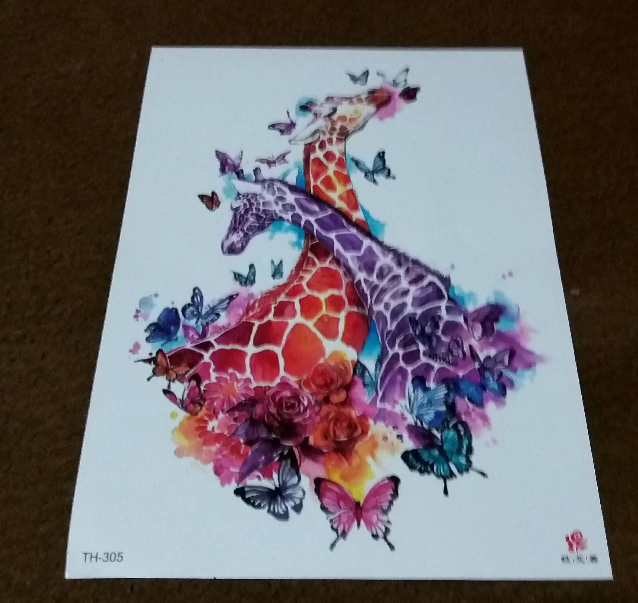 Тату с рукавами, наклейки акварельные животных, временная тату с жирафом, волком, тигром, бабочкой, тату водяного цвета для тела девочек