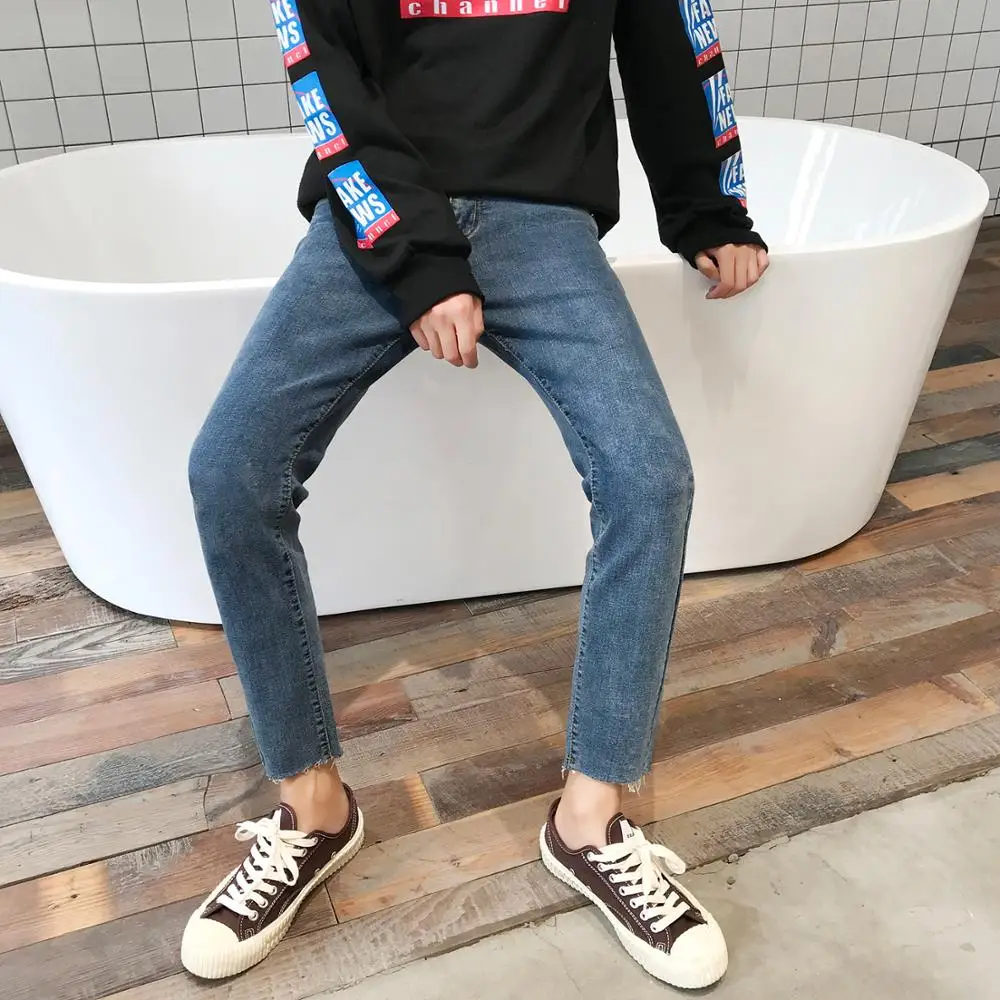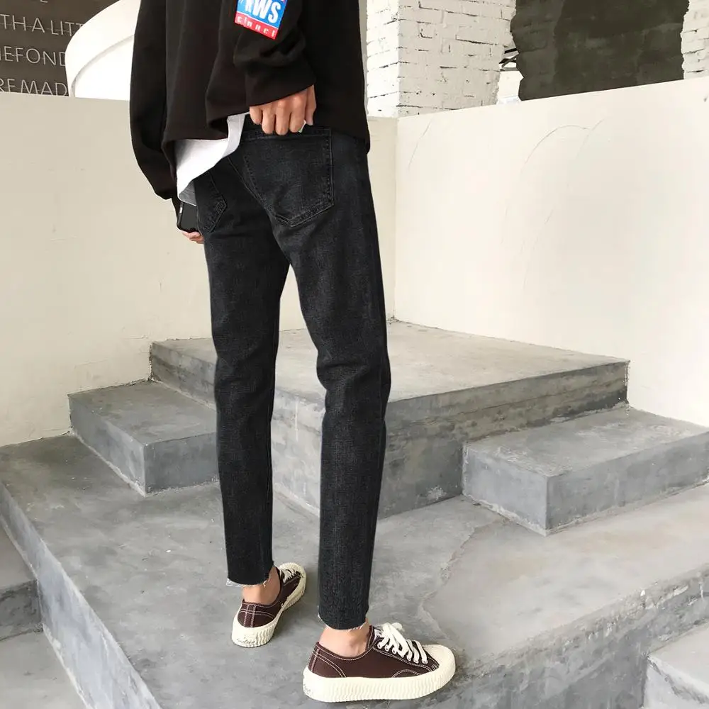 Мужские джинсы в японском стиле, Однотонные эластичные облегающие классические синие повседневные брюки, байкерские джинсовые брюки, 2020