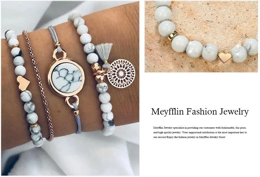 4 шт., Женский хлопковый браслет с бусинами и подвесками