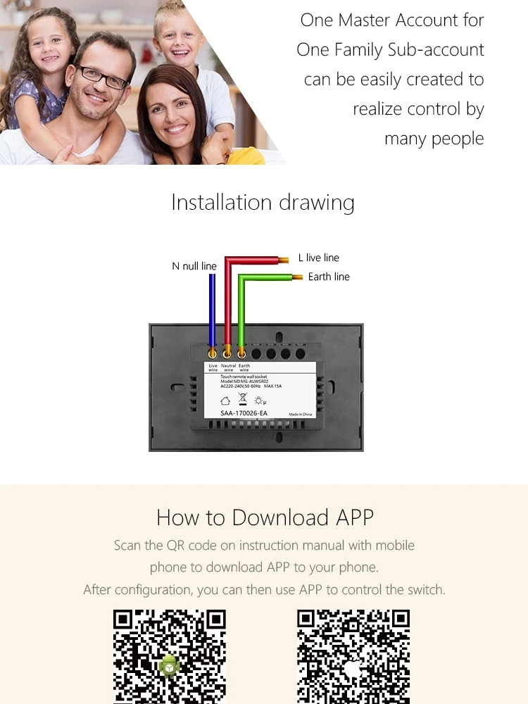 FunctionAU Standard Touch Sensitive power socket,Smart WIFI Socket