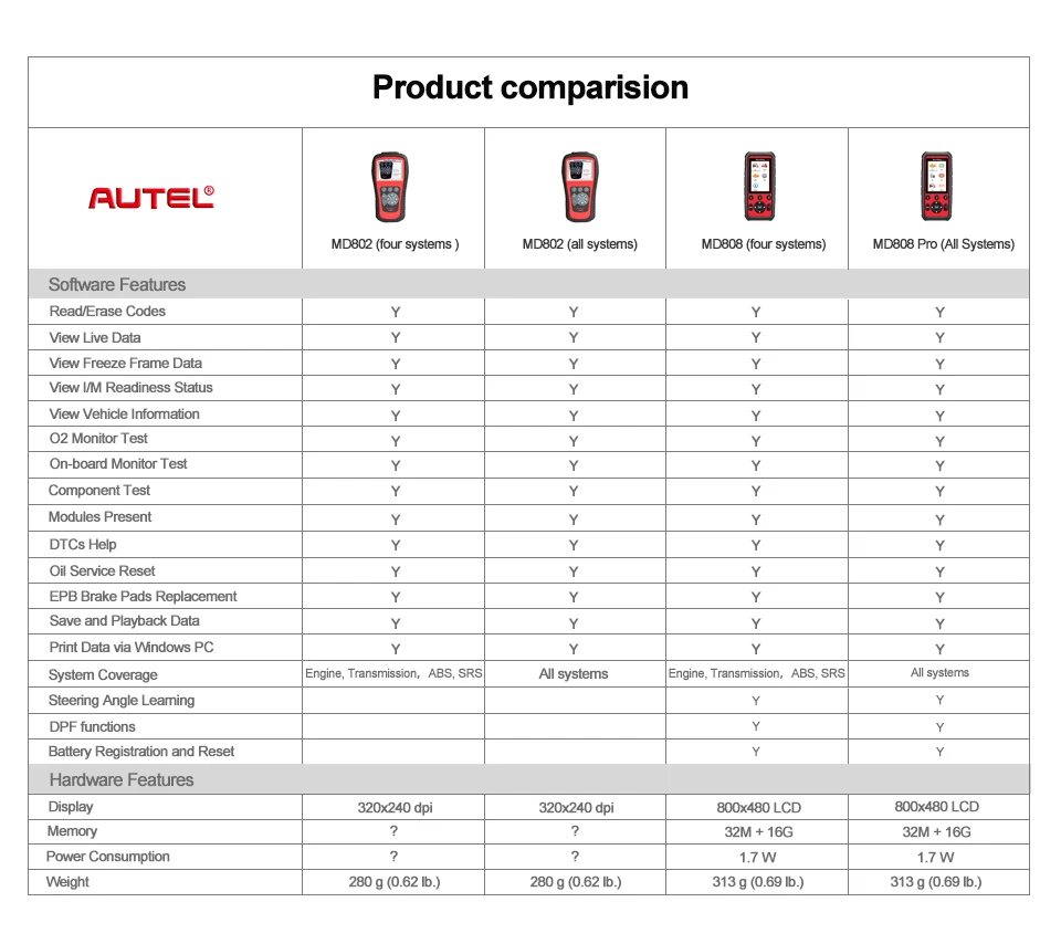 1.MD808 PRO поддерживает все системы автомобилей, md808 поддерживает только 4 системы, а MD808 PRO-обновленная версия MD802, покрытие больше автомобилей и больше систем.2.MD808 PRO Поддержка обучения рулевым ангелом, функции DPF, регистрация и сброс батареи.MD802 не имеет этих функций