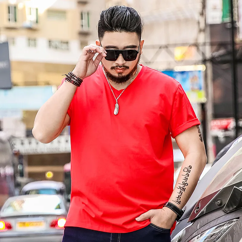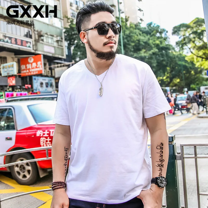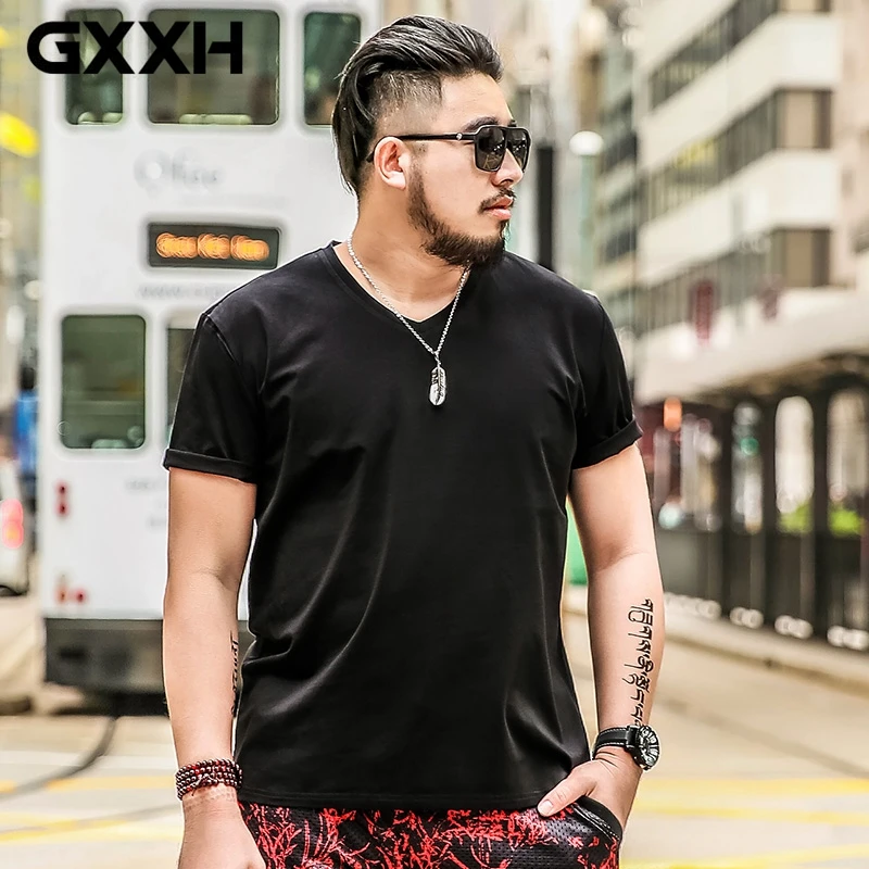 Мужская футболка большого размера плюс 5XL, Мужская однотонная хлопковая футболка с коротким рукавом и v-образным вырезом, летняя белая футболка большого размера 6XL 7XL