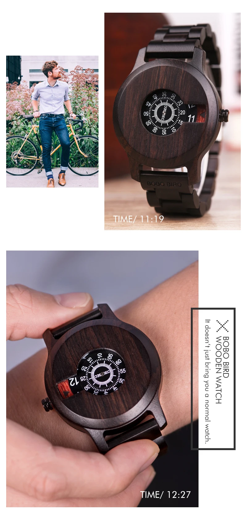 Деревянные часы BOBO BIRD, Мужские кварцевые уникальные наручные часы с передней частью, мужские наручные часы в подарочной коробке, мужские наручные часы