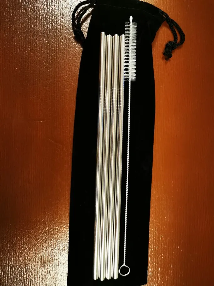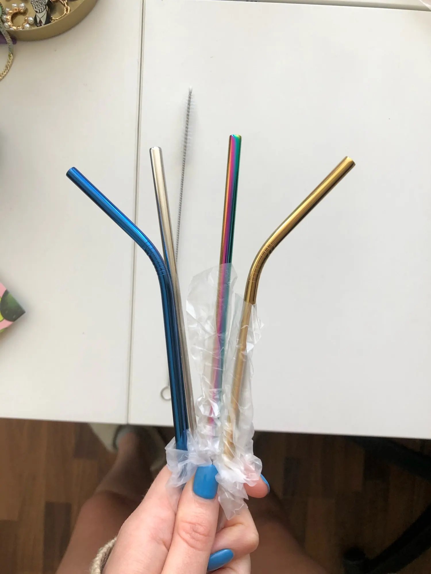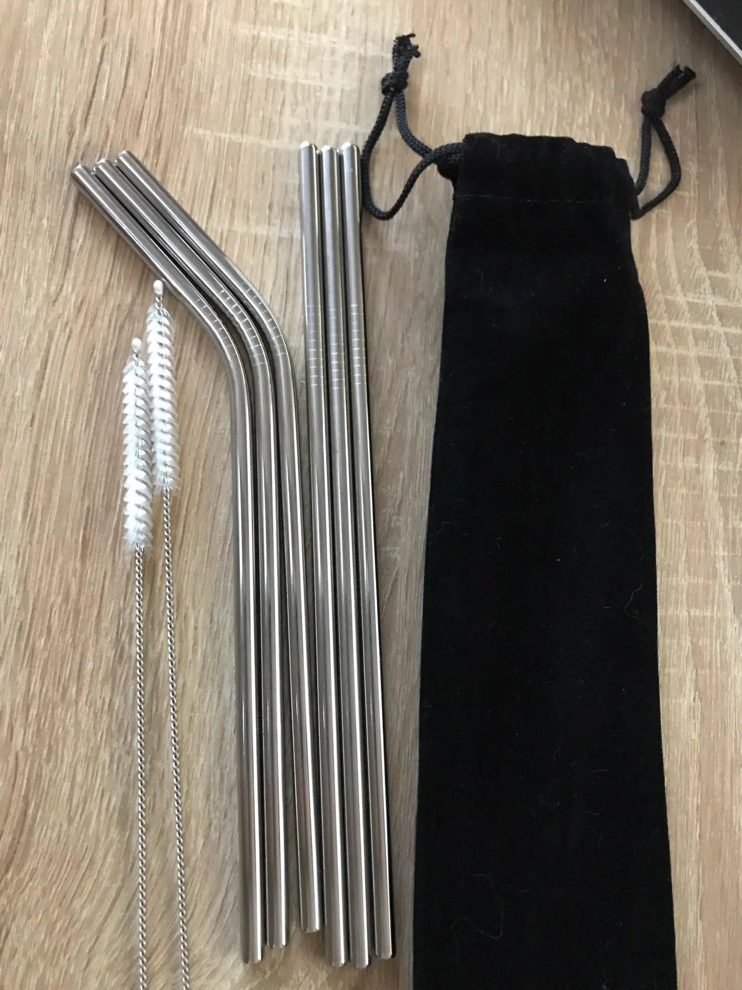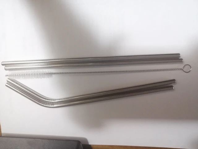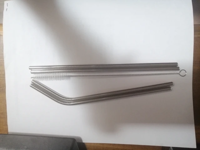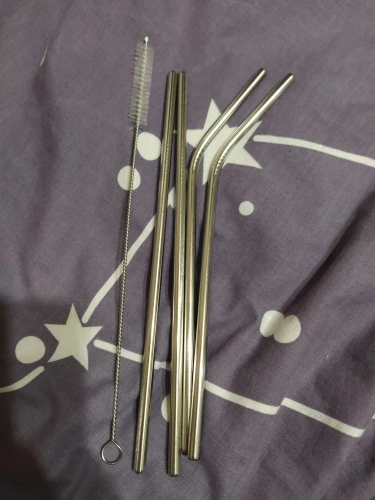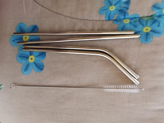 Трубочки несколько шире стандартных из пластика. Жаль что нет комбинации 2 серебряных, 2 золотых, поэтому пришлось брать такой вариант. С виду все ок, как на деле - пока неизвестно. Одна трубочка почему-то не была запакована, но это не особо важно)