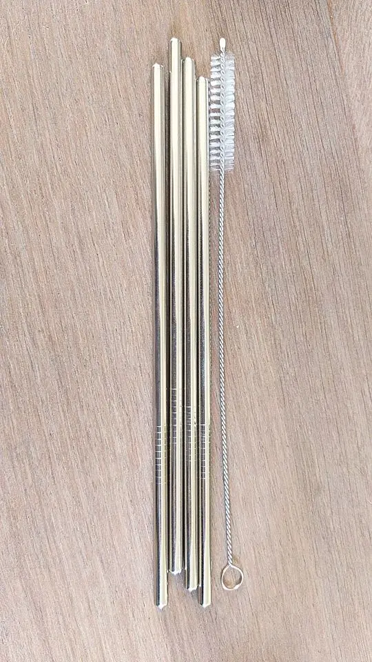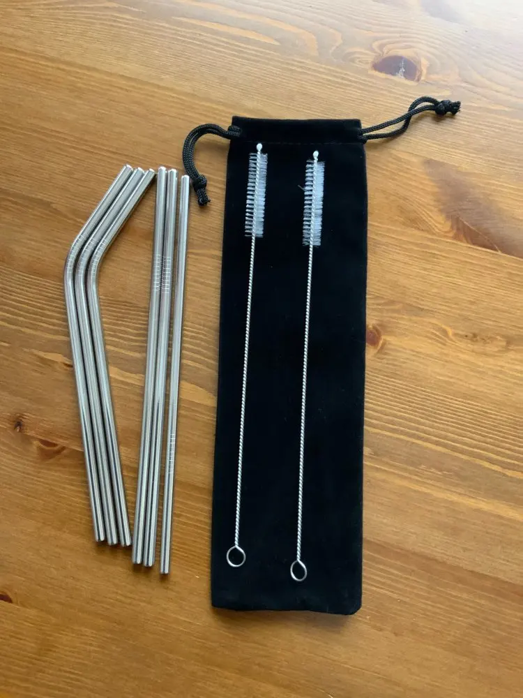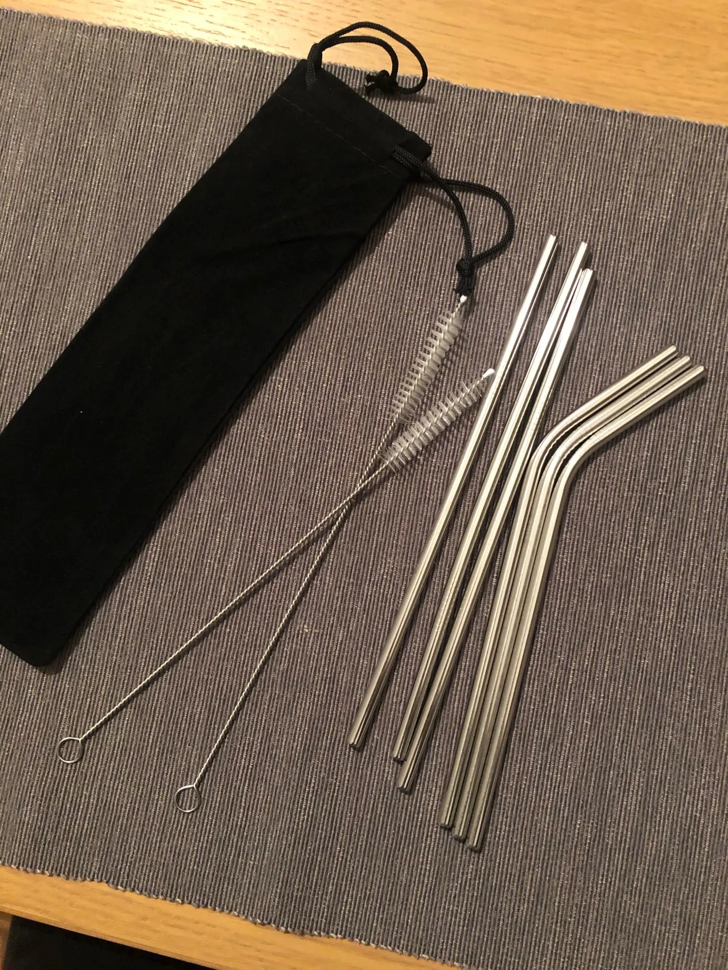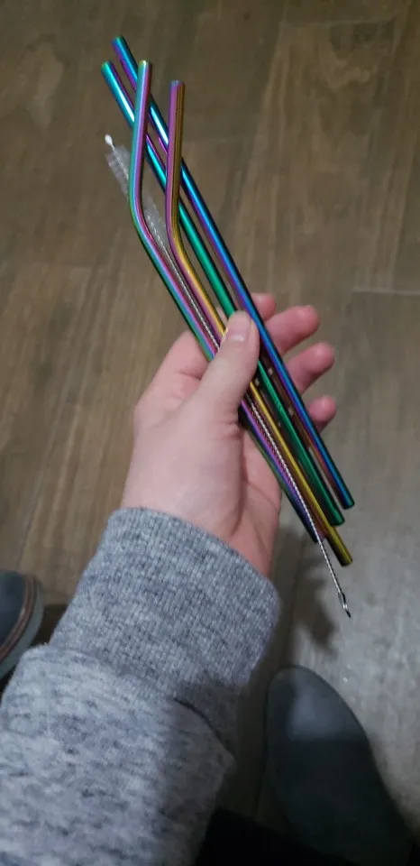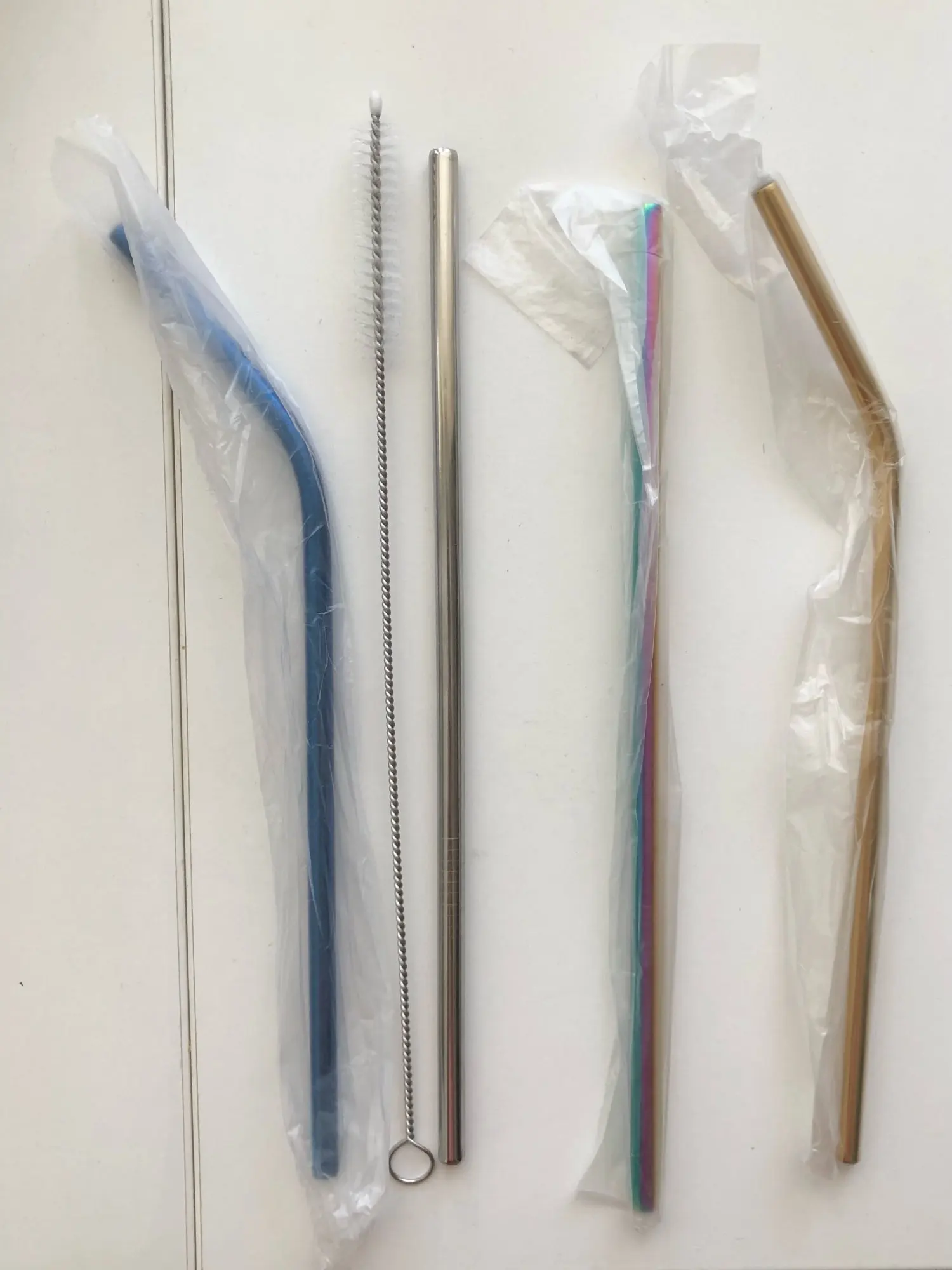 Трубочки несколько шире стандартных из пластика. Жаль что нет комбинации 2 серебряных, 2 золотых, поэтому пришлось брать такой вариант. С виду все ок, как на деле - пока неизвестно. Одна трубочка почему-то не была запакована, но это не особо важно)