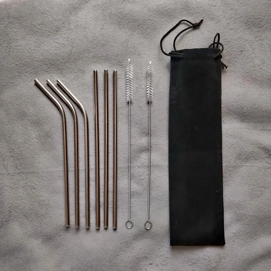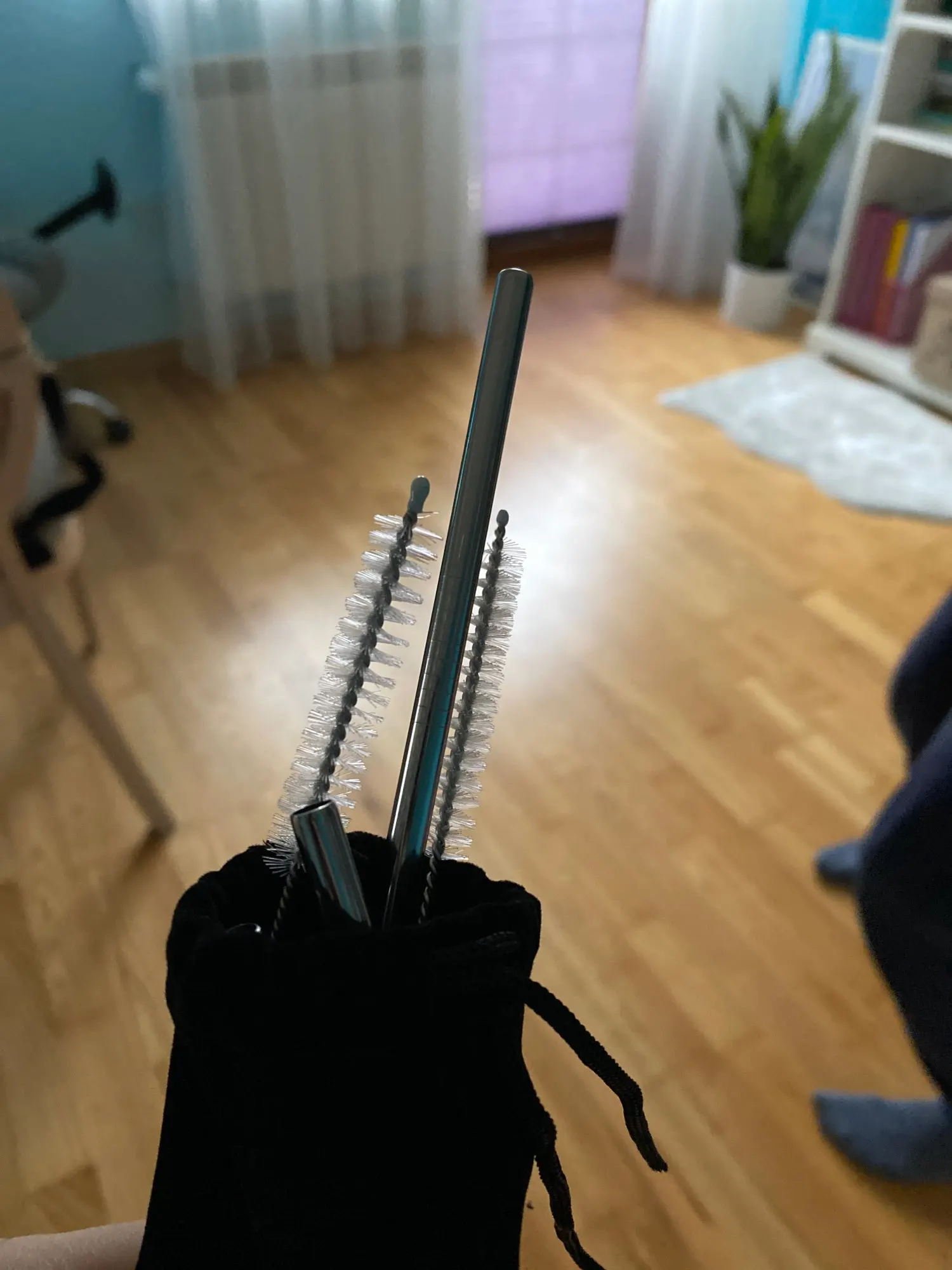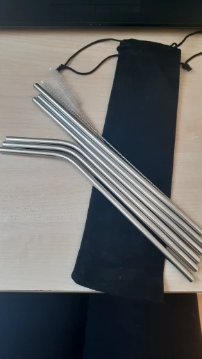Соломинки очень хорошего качества с двумя тампонами, чтобы очистить их мешок лаконичный, но мы можем хранить их внутри. Я рекомендую его.