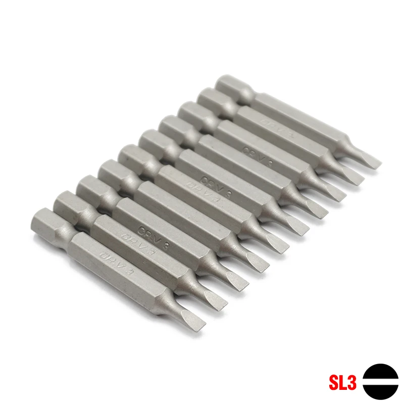 Набор бит отверток с шестигранным хвостовиком, 5 или 10 шт., 14 дюйма, 6,35 мм, длина 50 мм, хром-ванадиевая сталь, плоский SL3 SL4 SL5 SL6 SL7