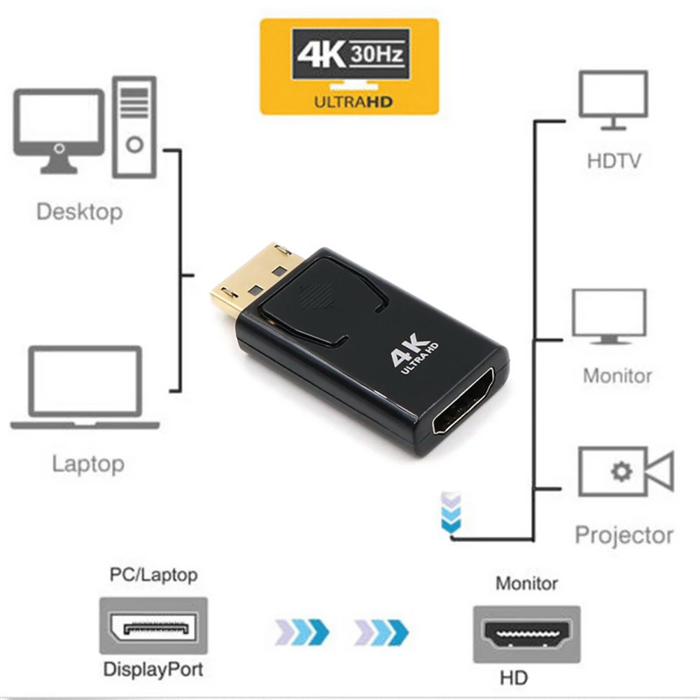 Адаптер Kebidu для порта дисплея DP-HDMI-совместимый штекер-гнездо преобразователь 4K Ultra HD Видео Аудио разъем для HDTV ПК