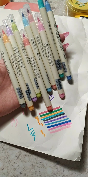 Очень хорошие кисти. Яркие цвета. что неудобно кончики как будто секутся между кистью и фломастером