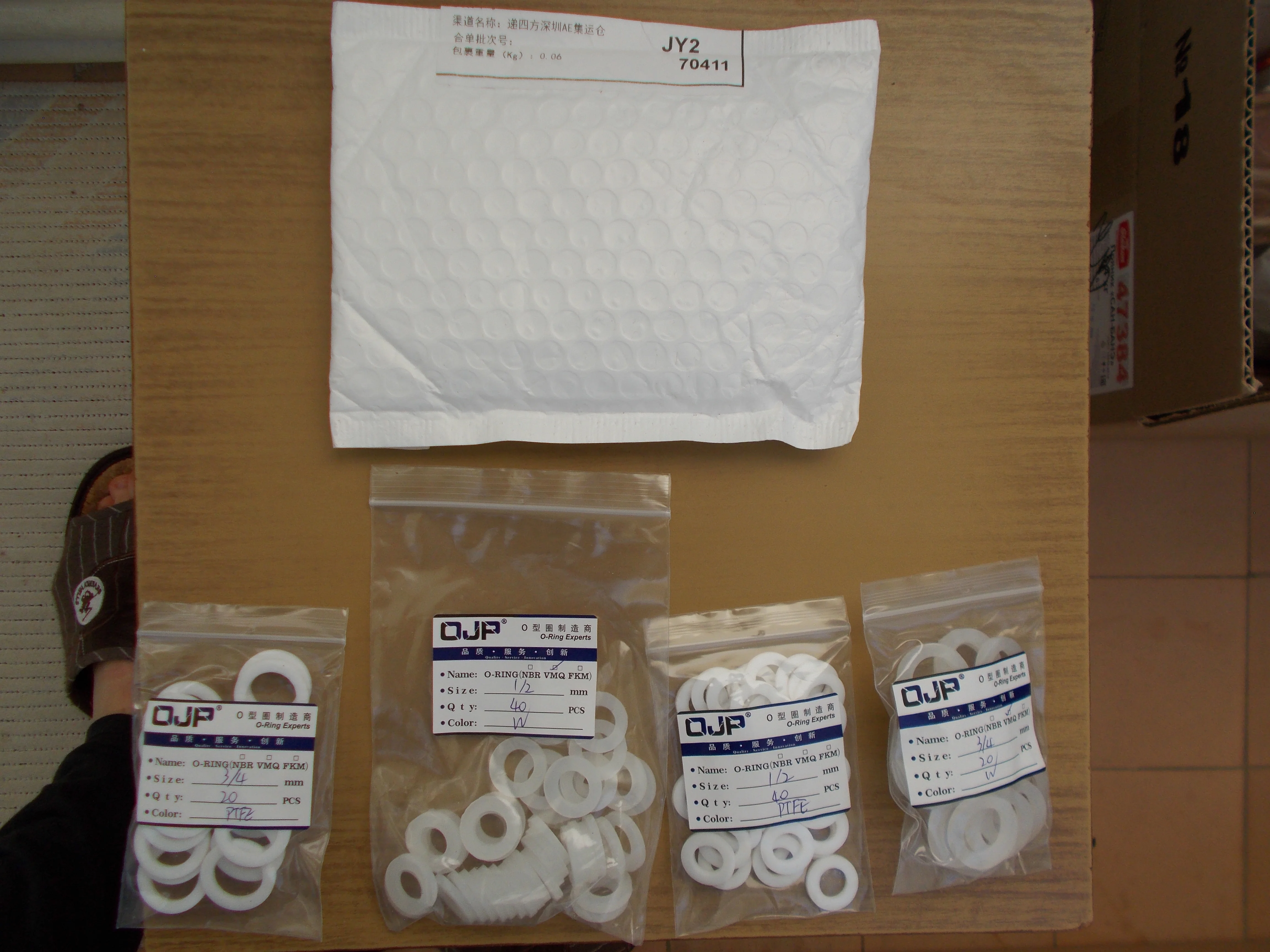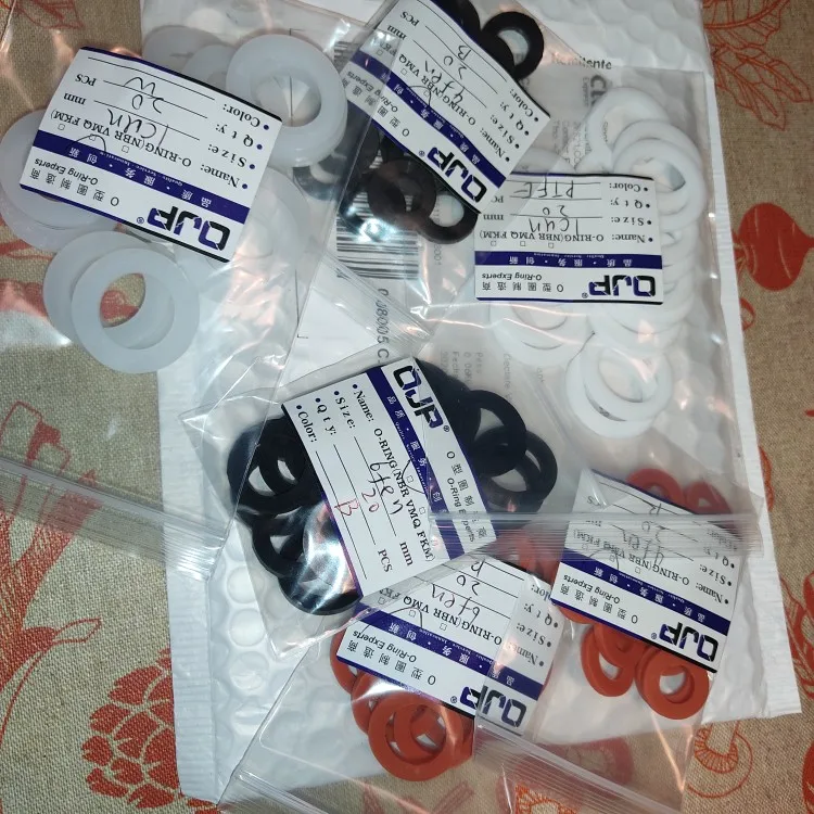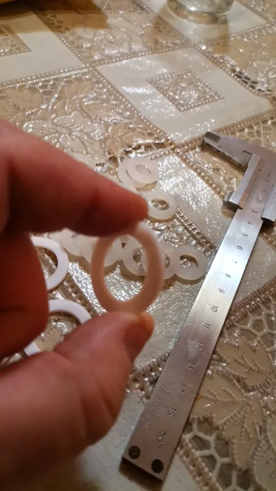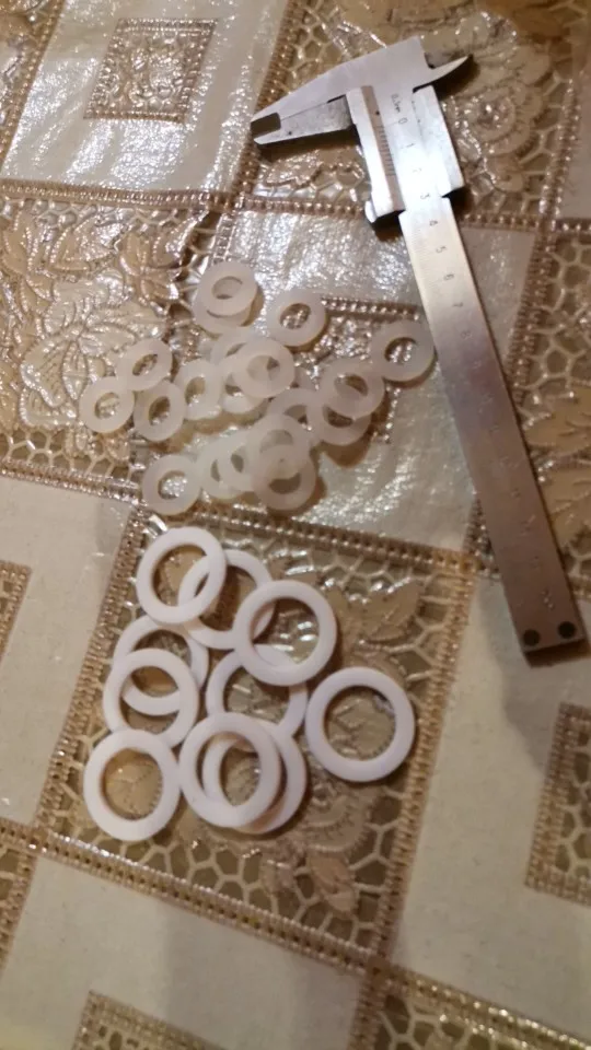 Заказ пришёл достаточно быстро. Продавец отправил заказ на третий день после заказа. Через 16 дней заказ ждал меня в почтовом отделении Волгоградской области. Разные шайбы были упакованы в разные подписанные zip-пакеты, которые сложили в общий пупырчатый пакет. Шайбы хорошего качества, ровные. Силиконовые имеют очень слабый запах, фторопластовые можно сказать запаха не имеют. Шайбы в пакетики насыпали на одну две больше заказанного.