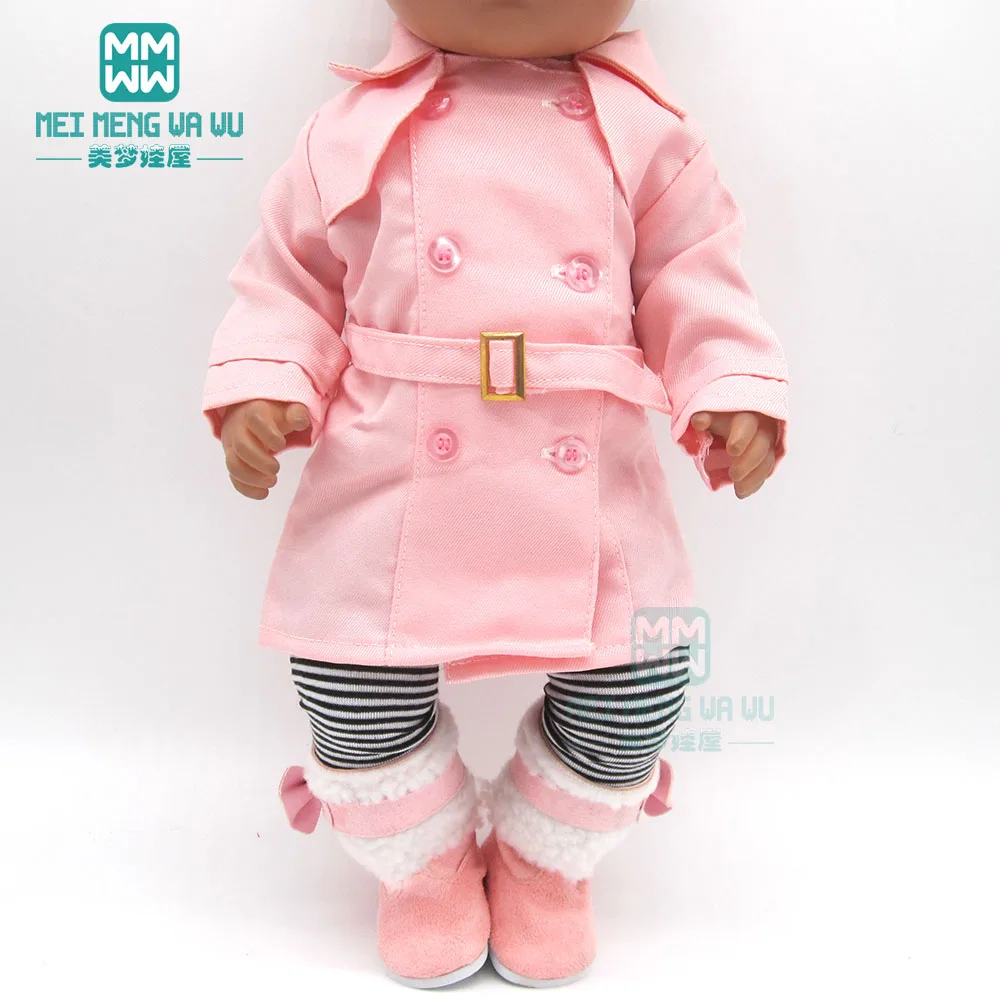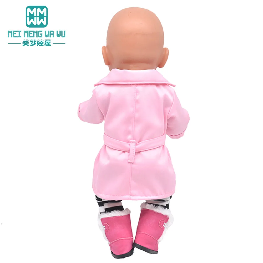 Одежда для куклы подходит для малышей 43 см, лысая игрушка для новорожденных и американская кукла, розовый меховой воротник, пальто + брюки