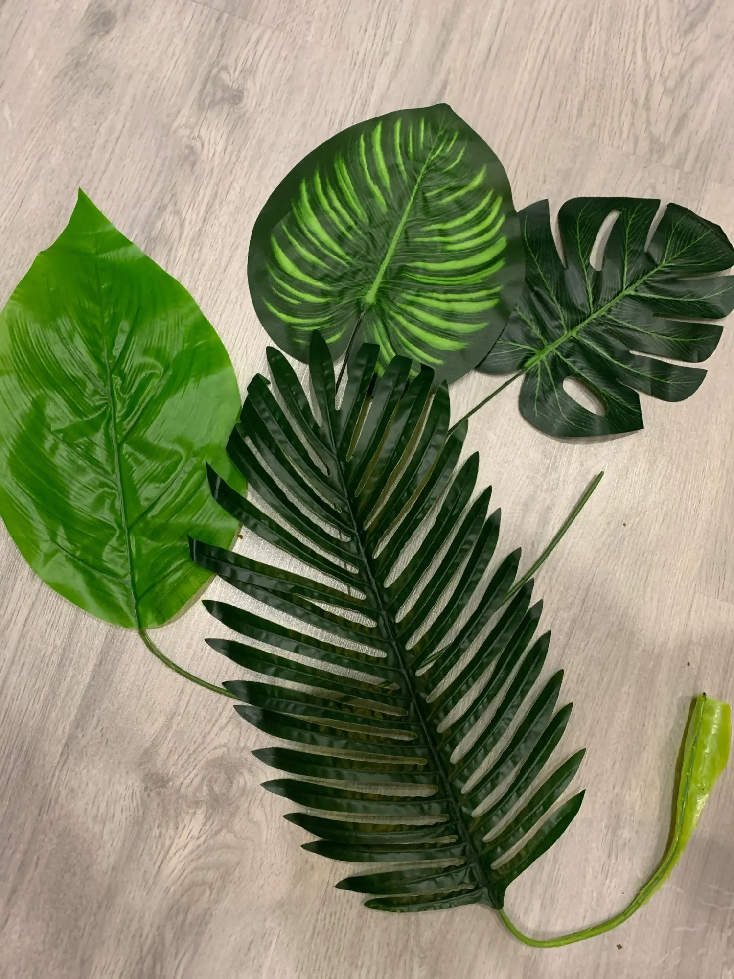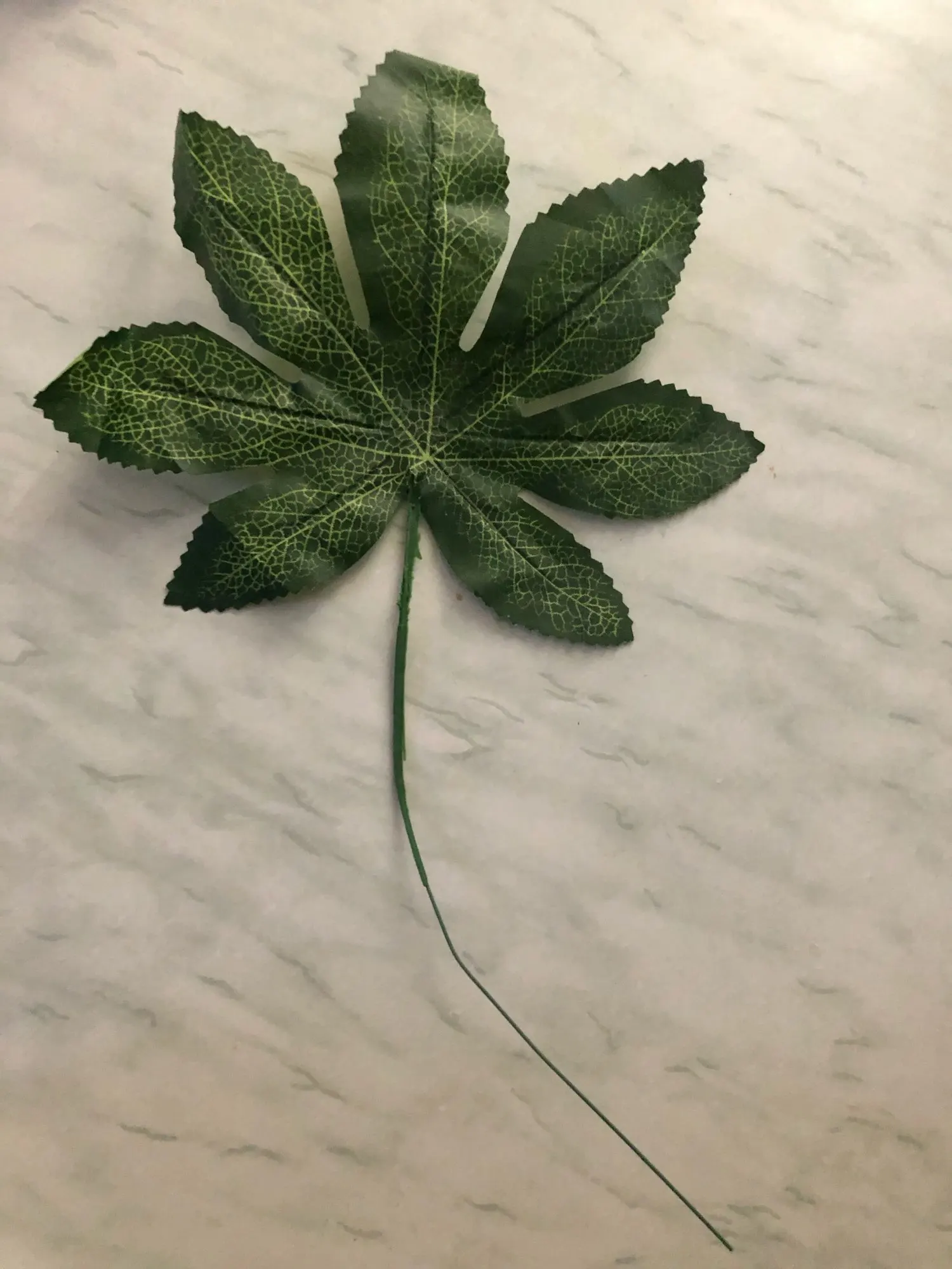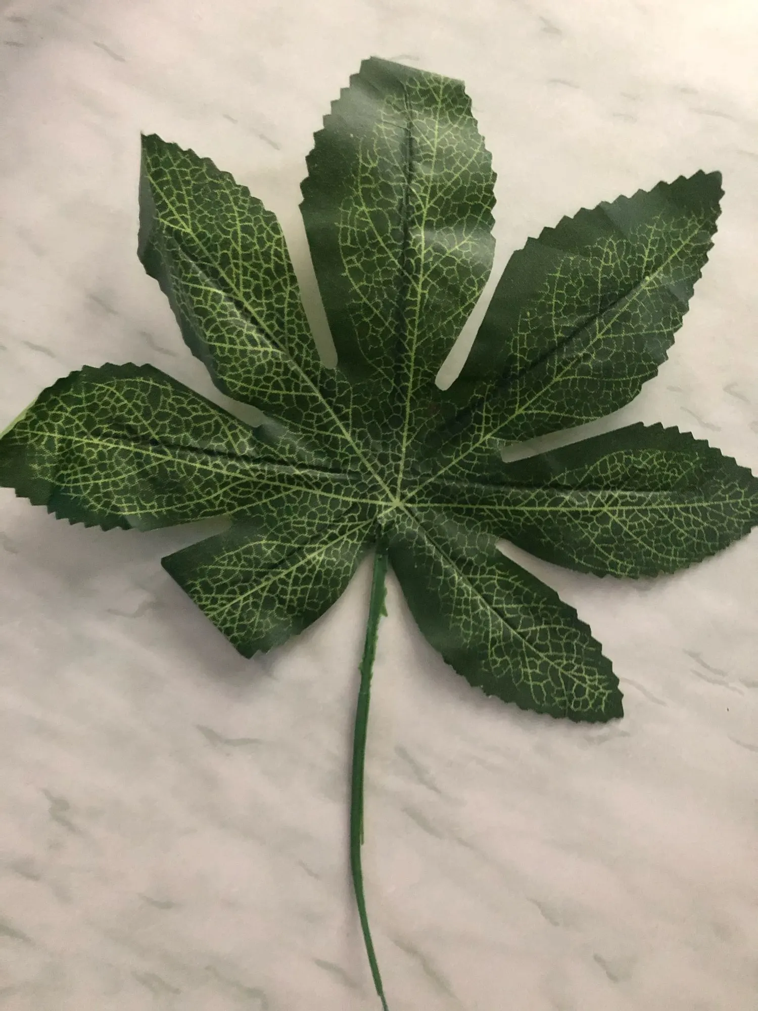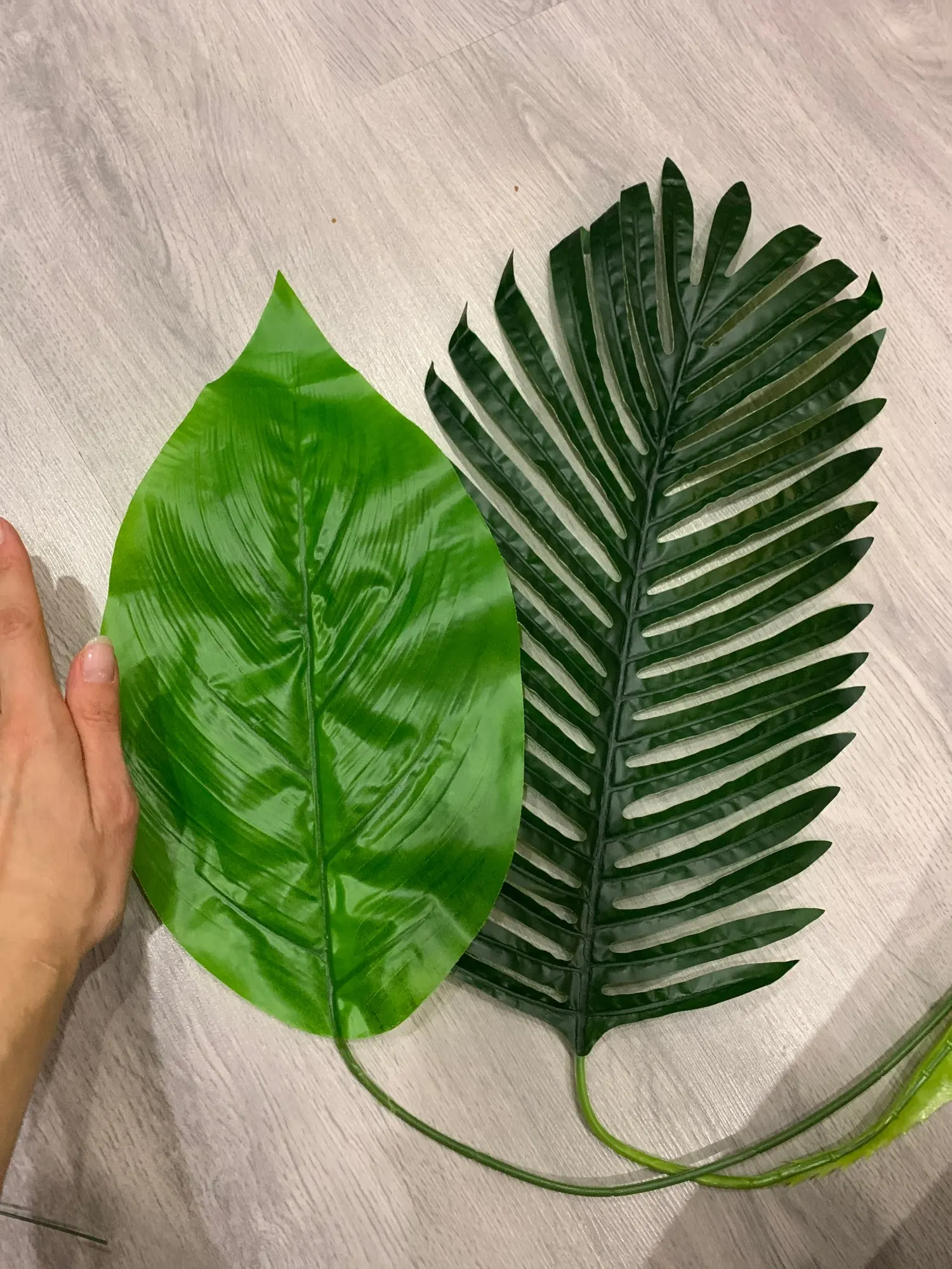 Дошли быстро, нормальные листочки. Материалом похожи на шторку для ванной. Взяла чтобы посмотреть на что они похожи, в принципе мне для декора подходят, для полётов картины надо ещё штук пять. В пути немного помялись, но выпрямить легко. Стебли короткие.